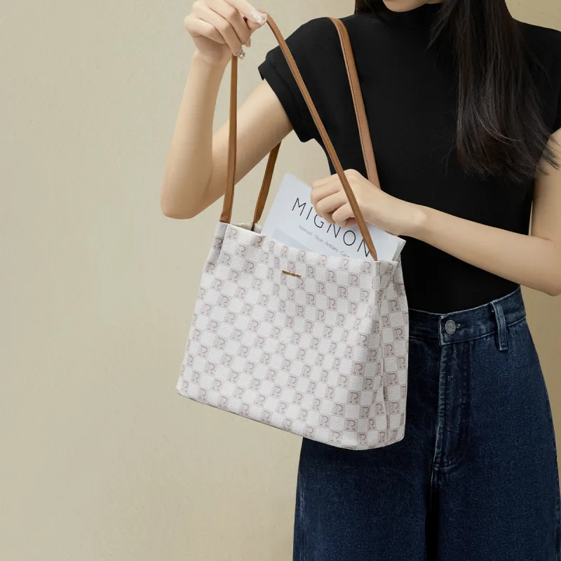 홍칭팅 PVC 토트 가방, 쇼핑백, 숄더 백 레귤러 여성 에크루/블랙 - POIZON