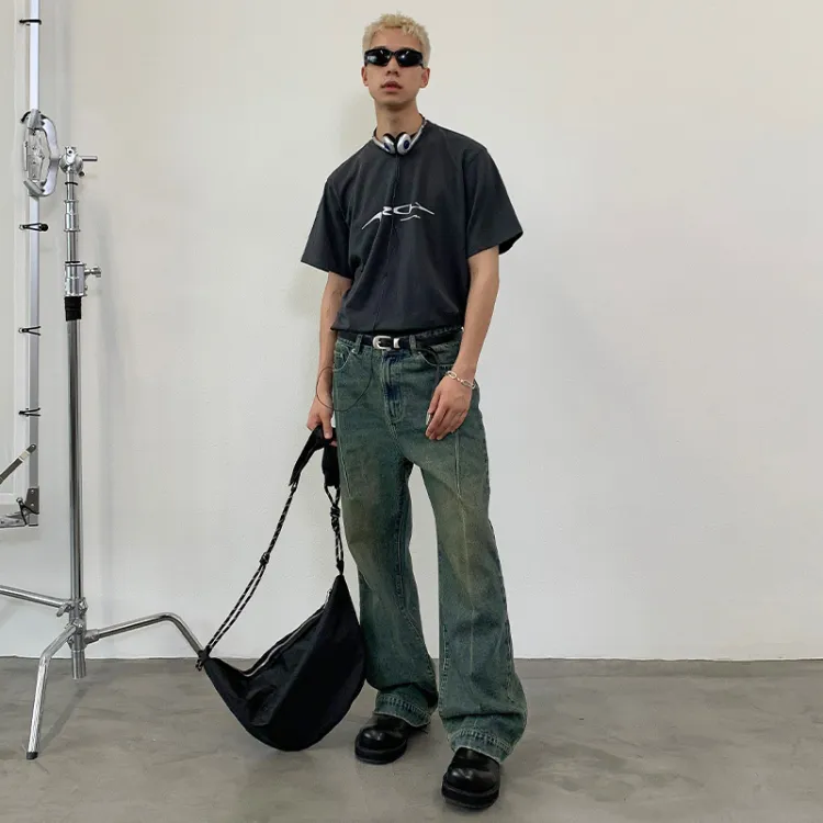 ROARINGWILD 아치 빈티지 옐로우 남녀공용 청바지 - POIZON