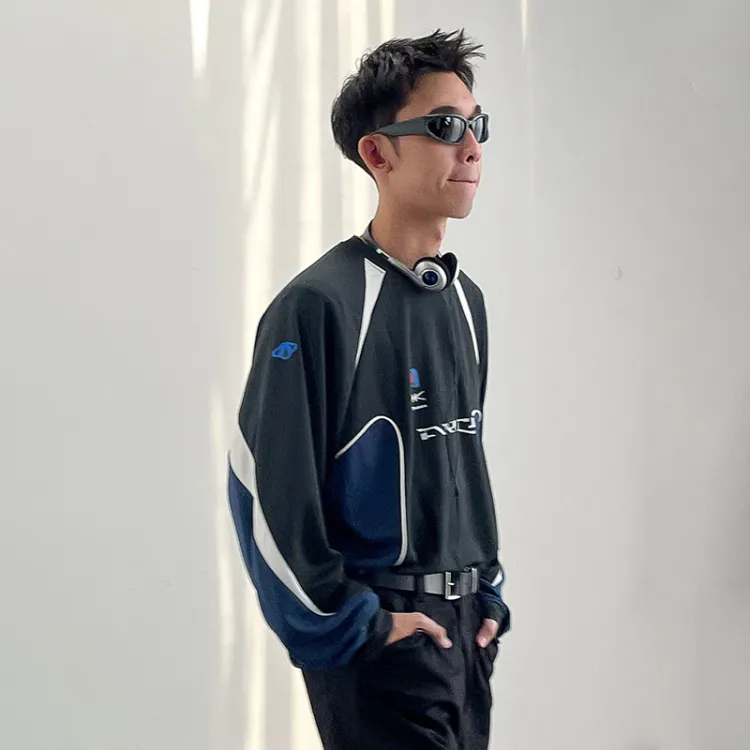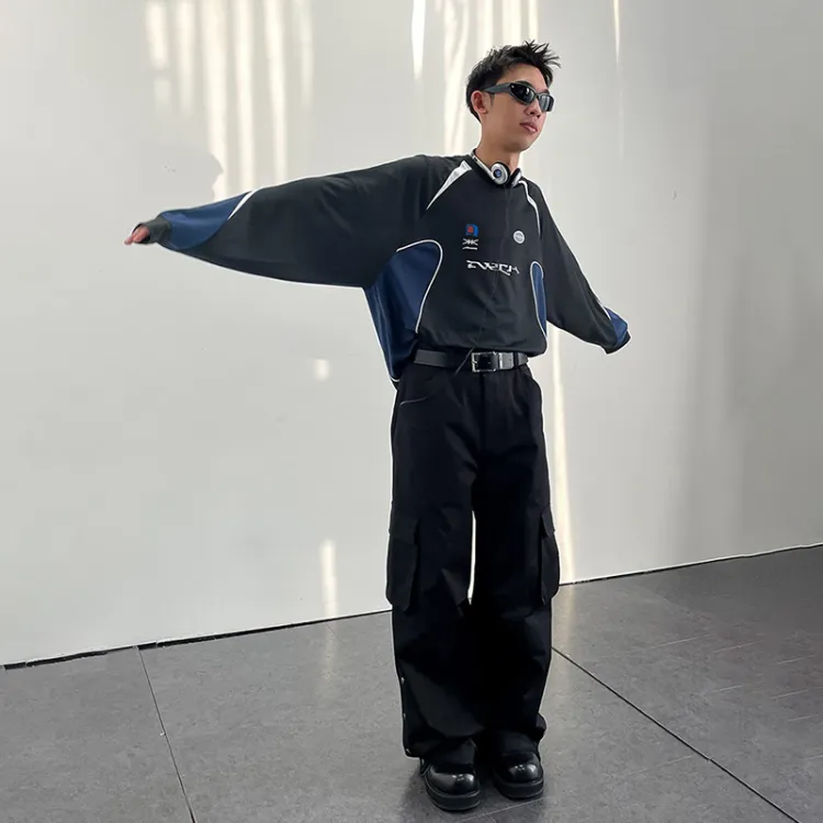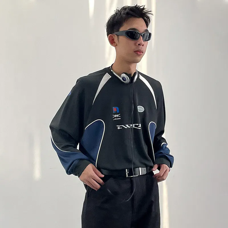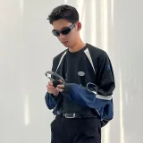 로어링 와일드 ROARINGWILD 아치 블랙 앤 블루 남녀공용 티셔츠 - POIZON