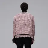 겉감: 69.2% 폴리에스터, 14.7% 양모, 14.3% 아크릴, 1.8% 기타 섬유 기본 원단: 100% 폴리에스터 안감: 100% 폴리에스터