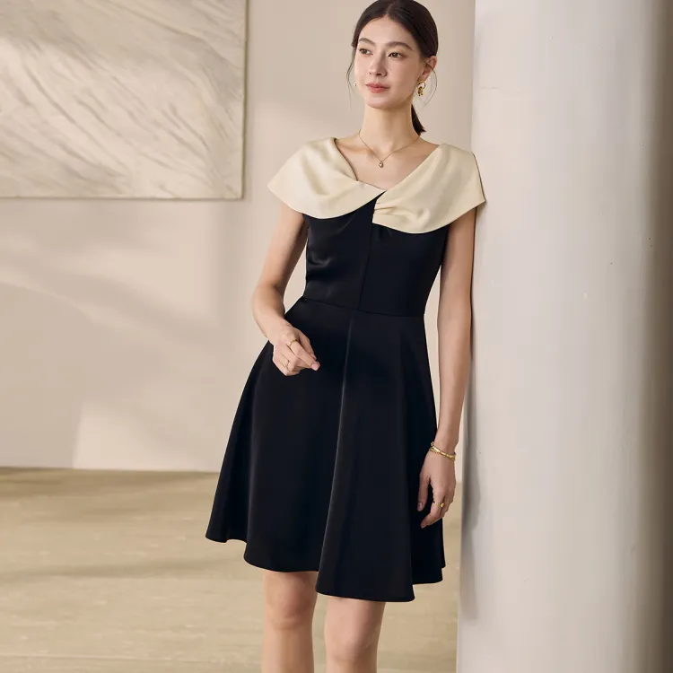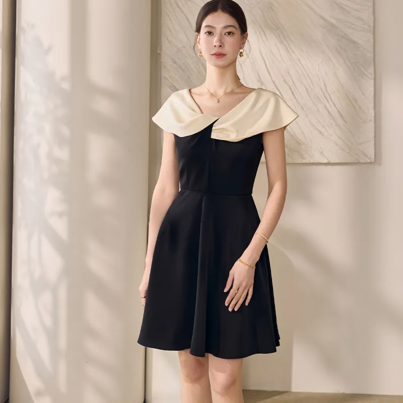 ROEYSHOUSE 블랙 여성 반팔 원피스