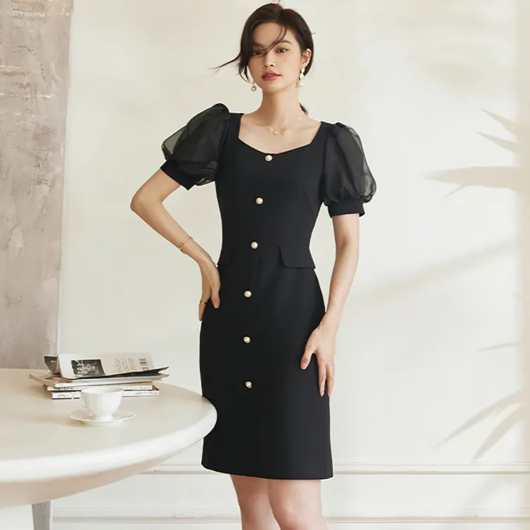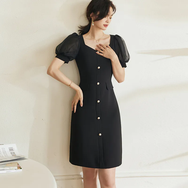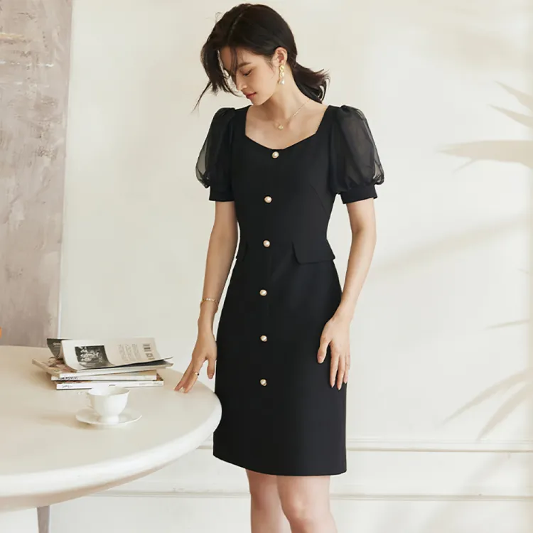 ROEYSHOUSE 블랙 여성 반팔 원피스