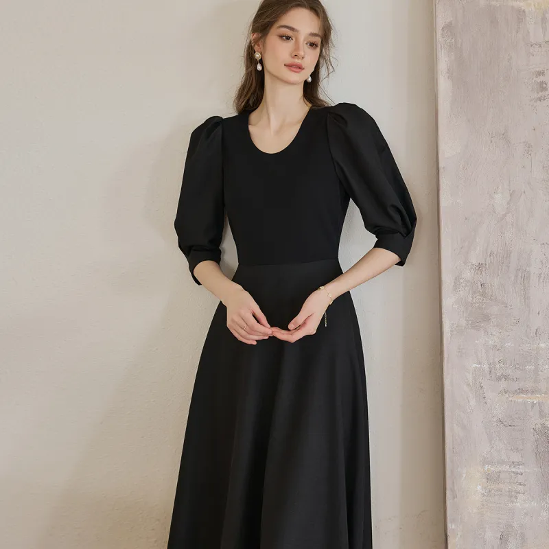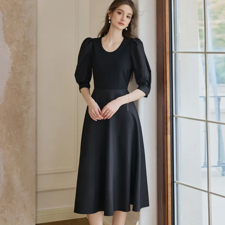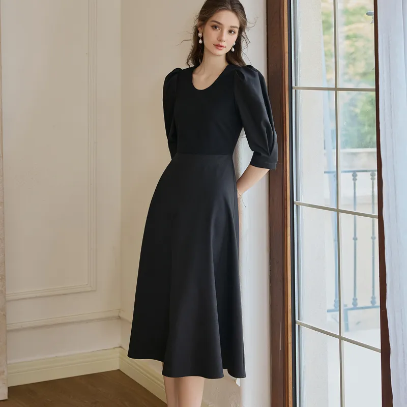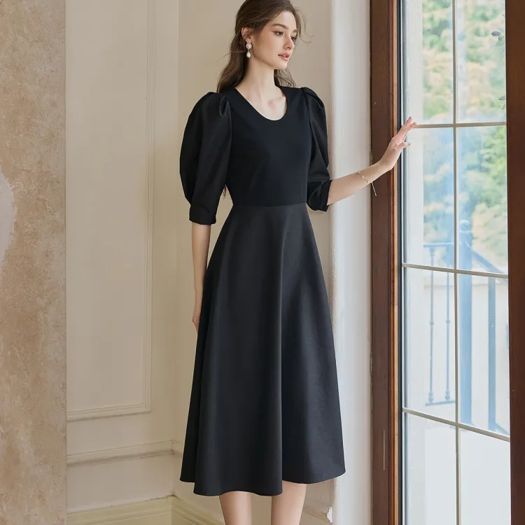 ROEYSHOUSE 블랙 여성 반팔 원피스