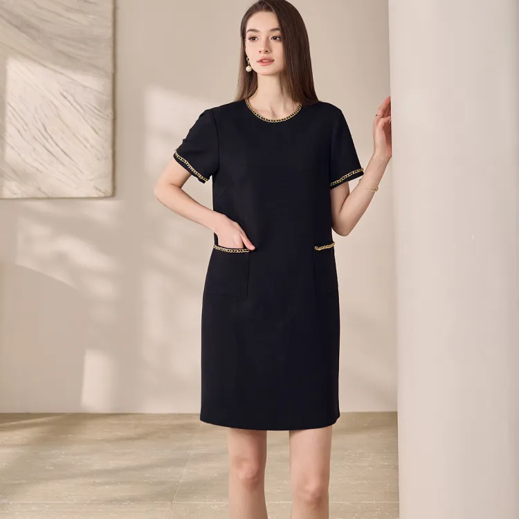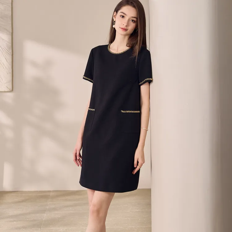 ROEYSHOUSE 블랙 여성 반팔 원피스
