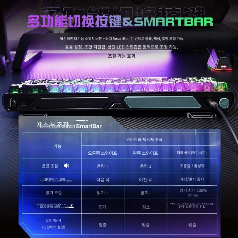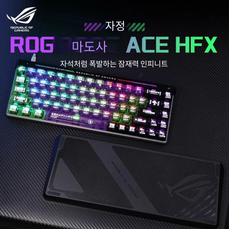 ROG 마법사 ACE HFX 유선형 연결 68키 RT Linear 스위치 맞춤제작 키 여행 8KHz 응답 속도, 가스켓 구조, 체리 MX와 호환 가능, RGB 동기화, 게이밍 및 E스포츠 개성 있는 기계식 키보드