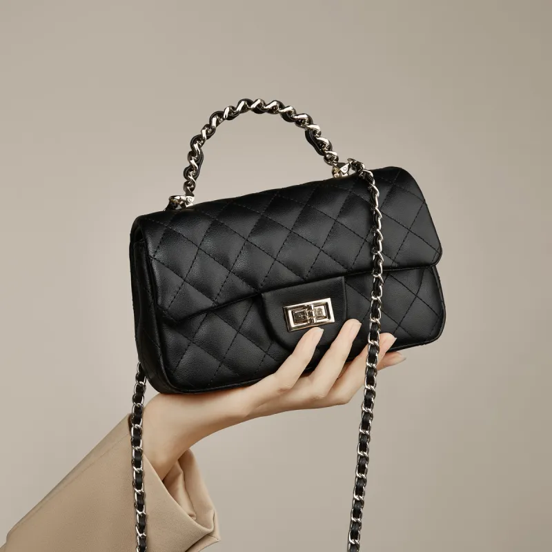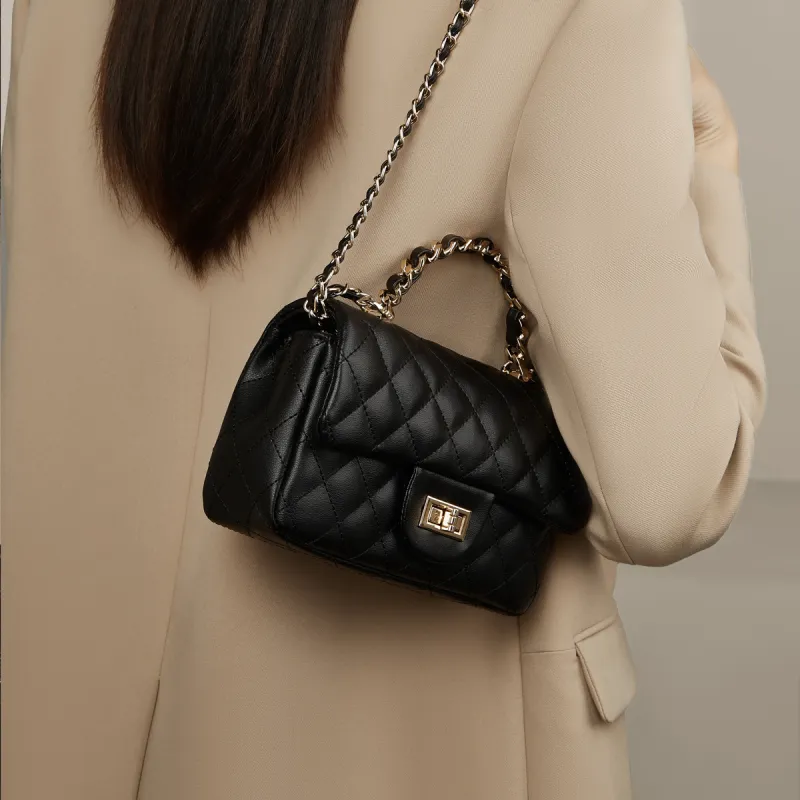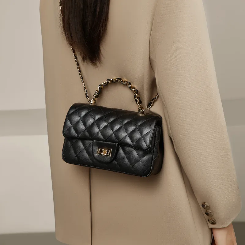 Safiya 소 스플릿 가죽 핸드백, 숄더 백, 크로스백 여성 블랙 - POIZON