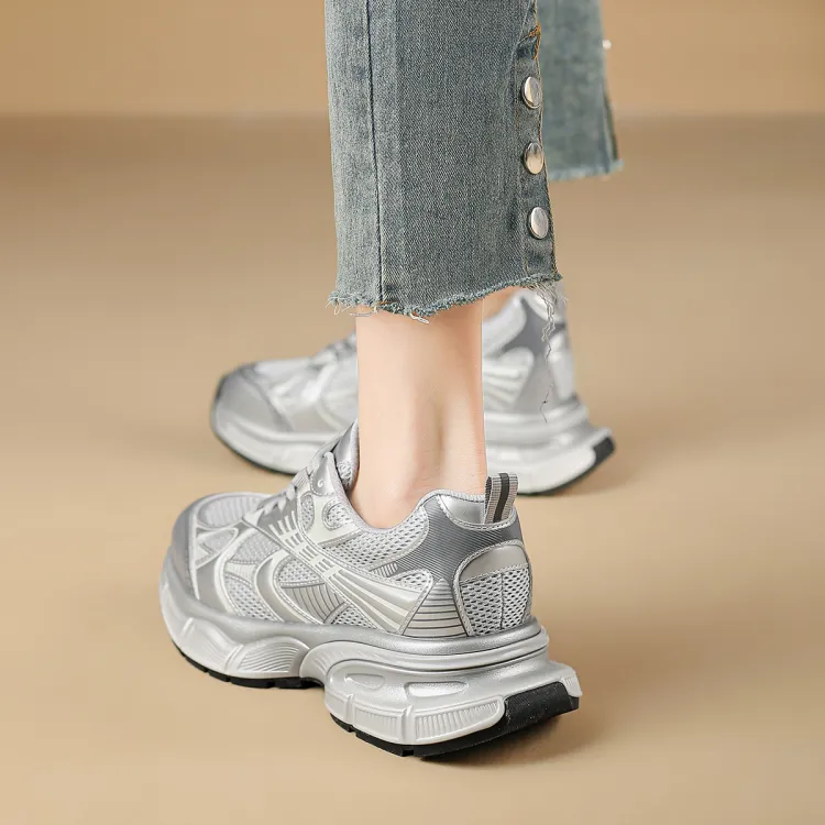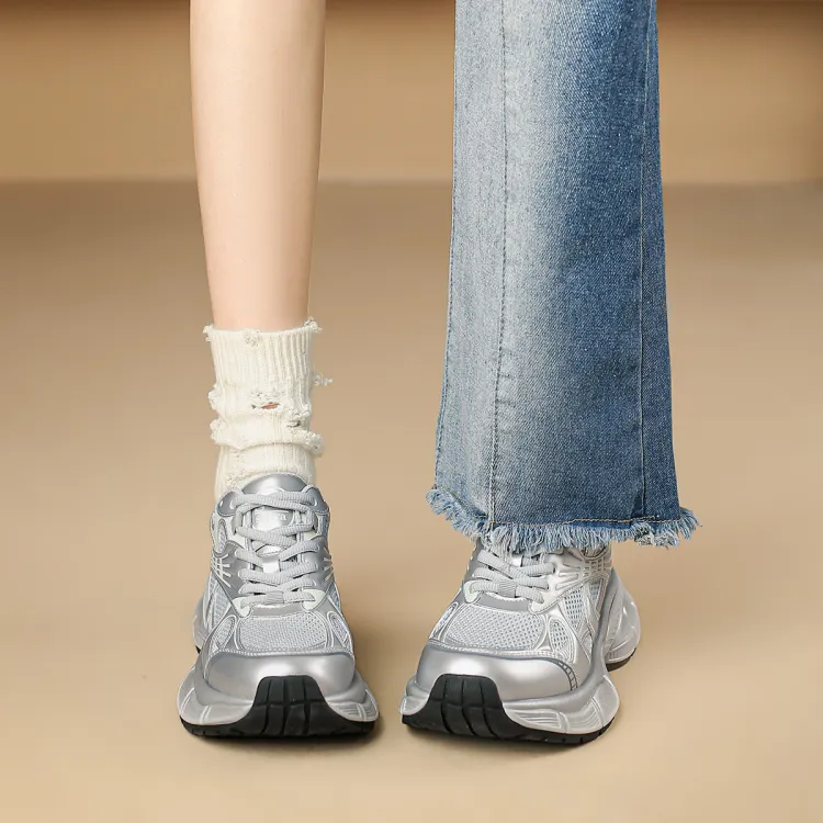 Safiya Shock Absorbers 미끄럼 방지+내마모성 로우탑 청키 스니커즈 여성 실버 그레이 - POIZON