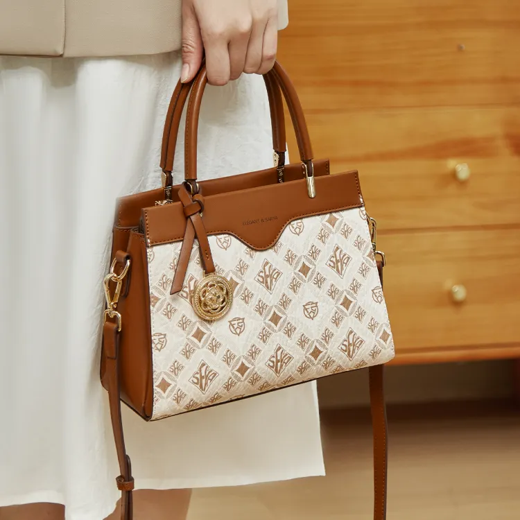 Safiya 합성 가죽 가방 레귤러 여성 에크루 & 브라운 - POIZON