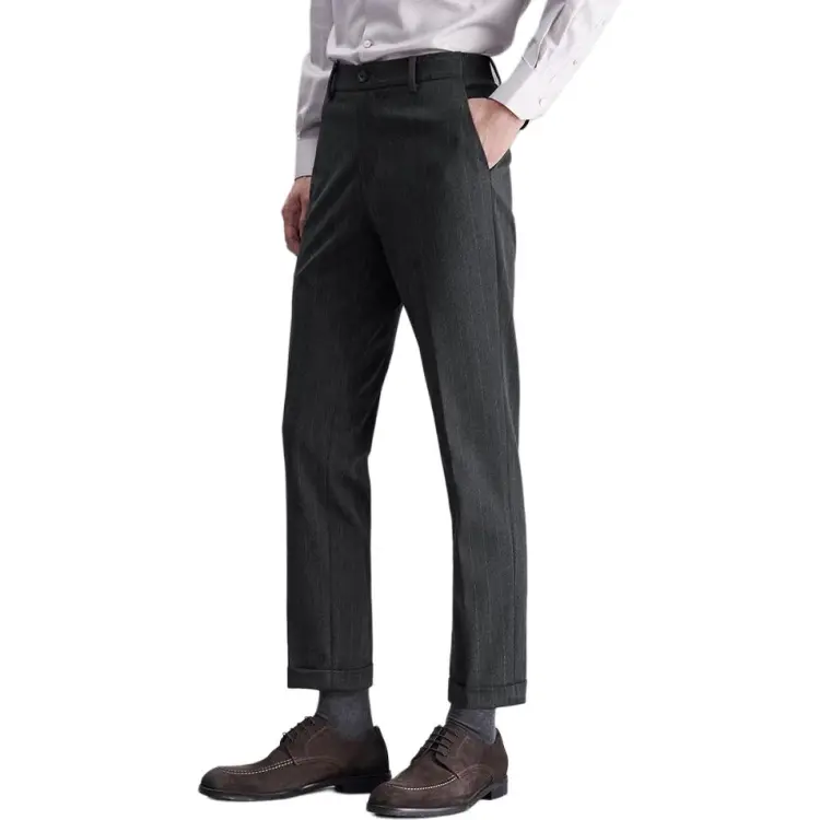 세인트 안젤로 캐주얼 팬츠 남성 그레이 커피 스트라이프 패턴