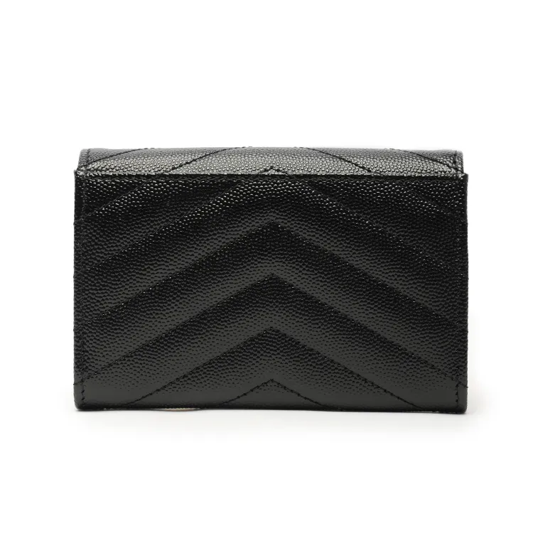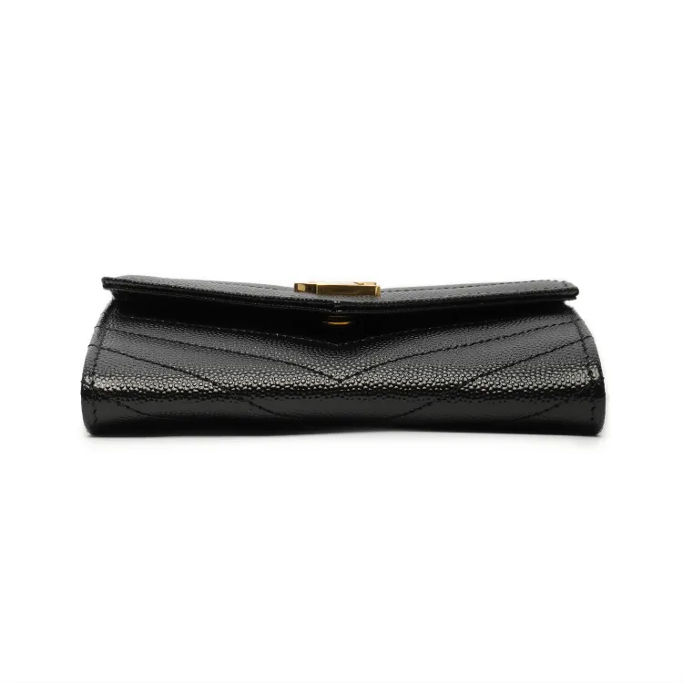 생로랑 카산드르 그레인 텍스처 엠보싱 소가죽 엔벨롭 백 지갑 S 여성 블랙 - POIZON