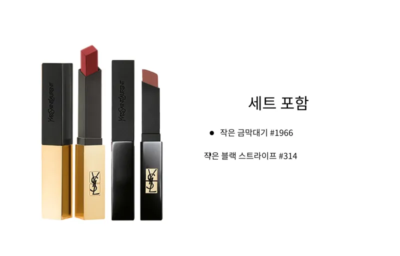 생로랑 립스틱 더블 박스, 골드 바 포함 스몰 블랙 줄무늬 벨루어 롱래스팅 무광 정장 2.2g+정장 2g, 여자친구 선물, 생일 선물