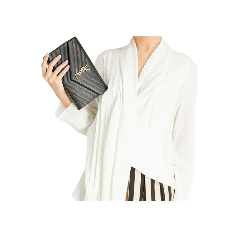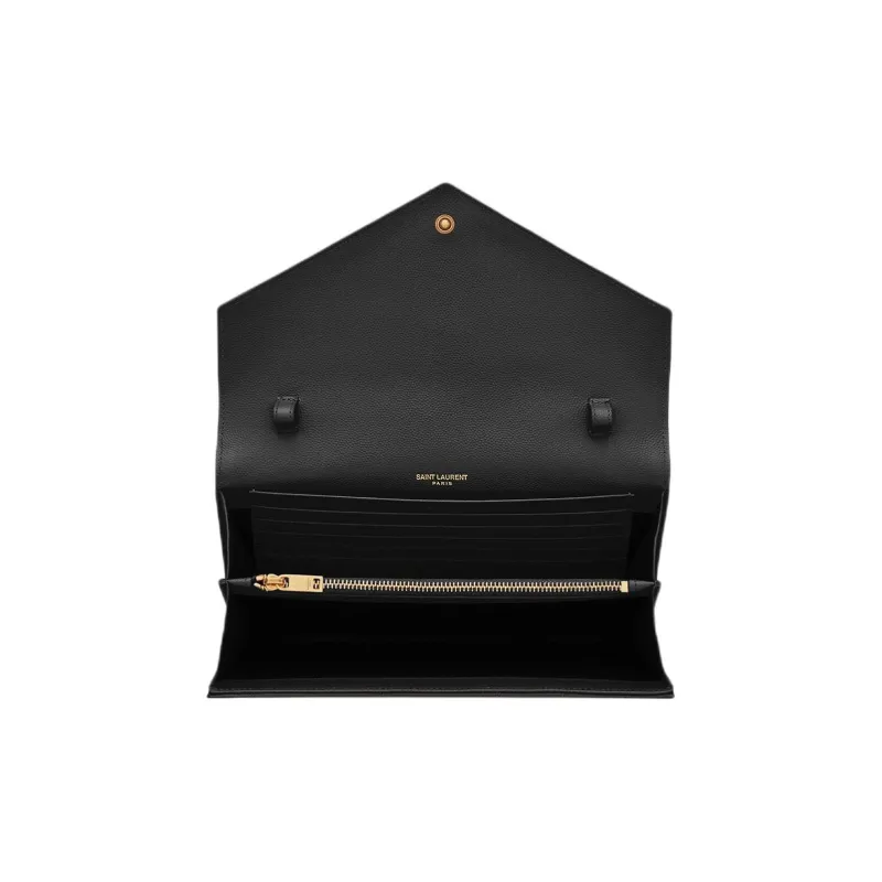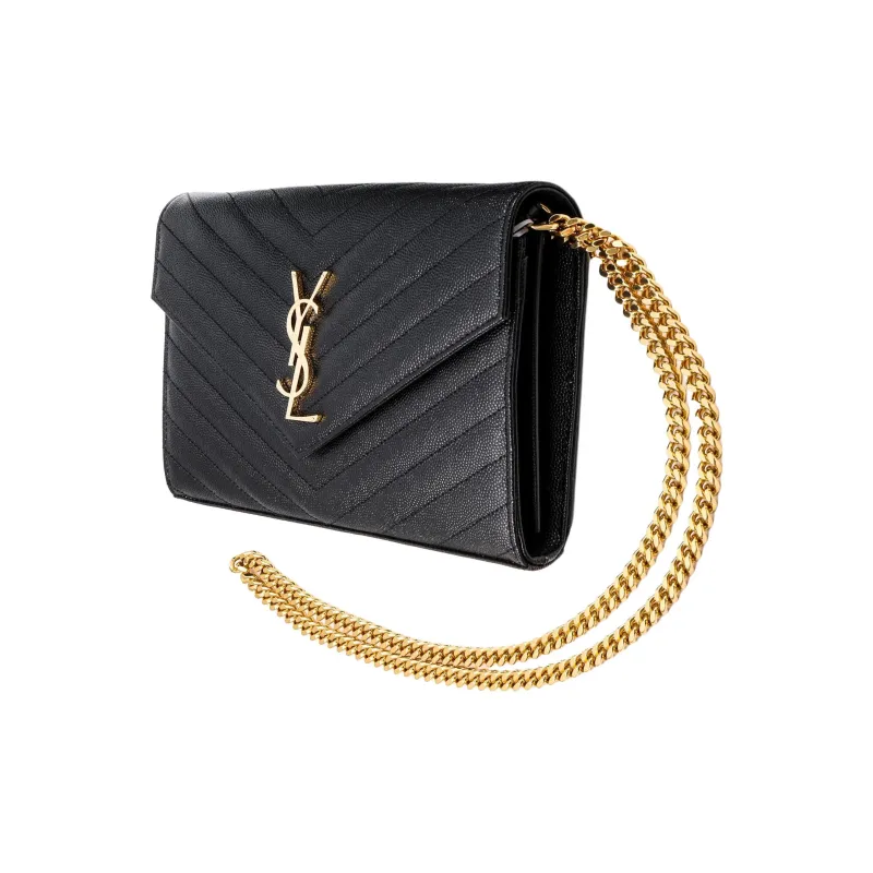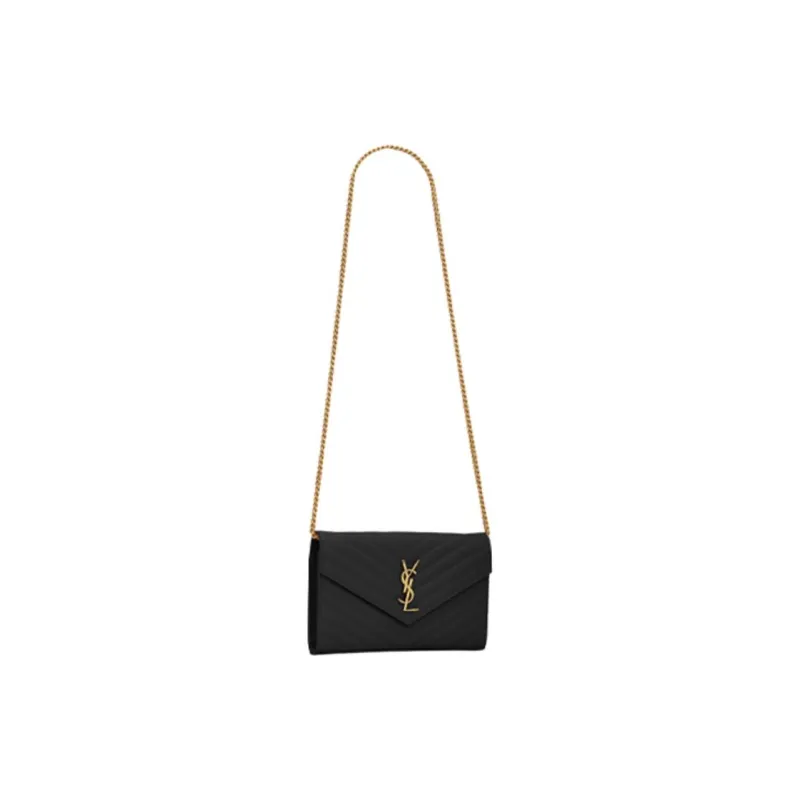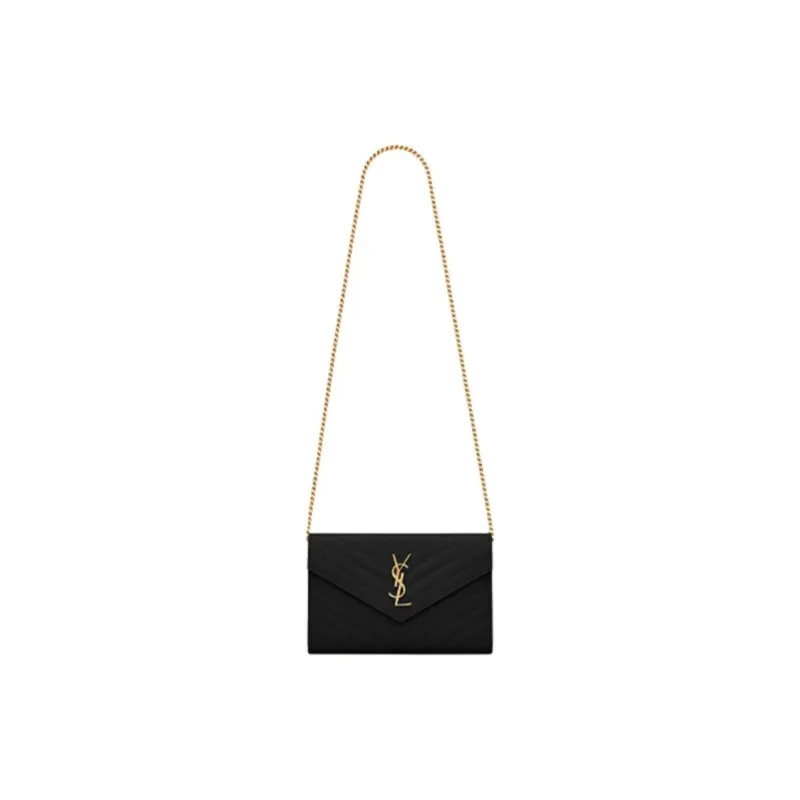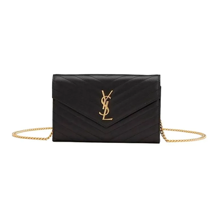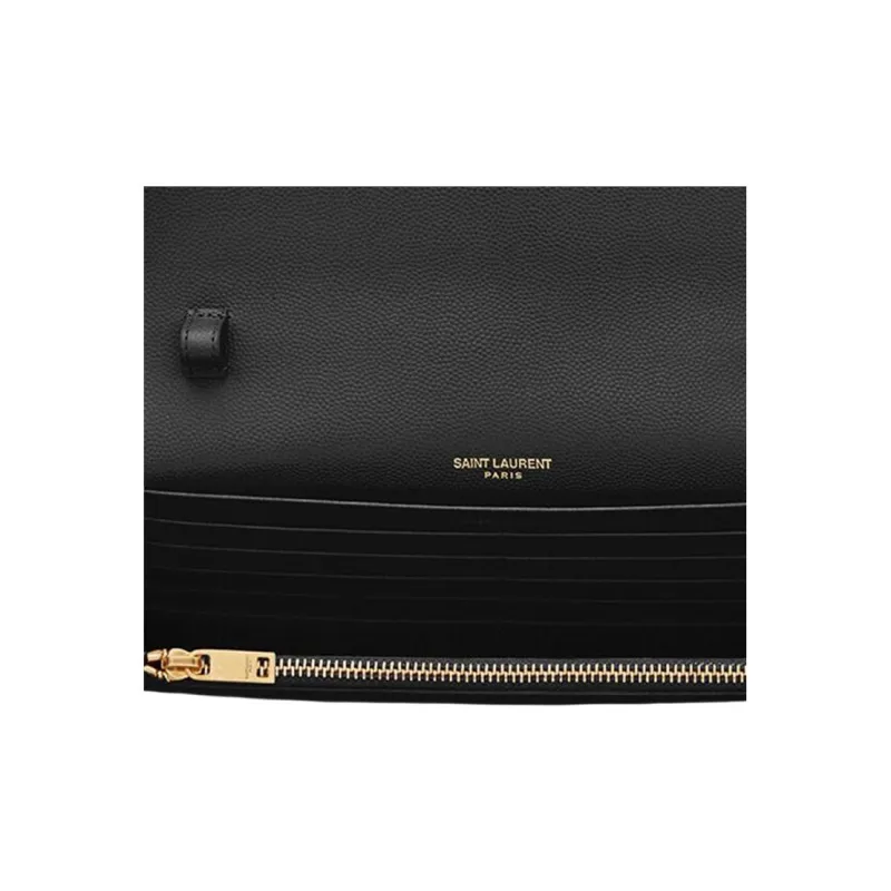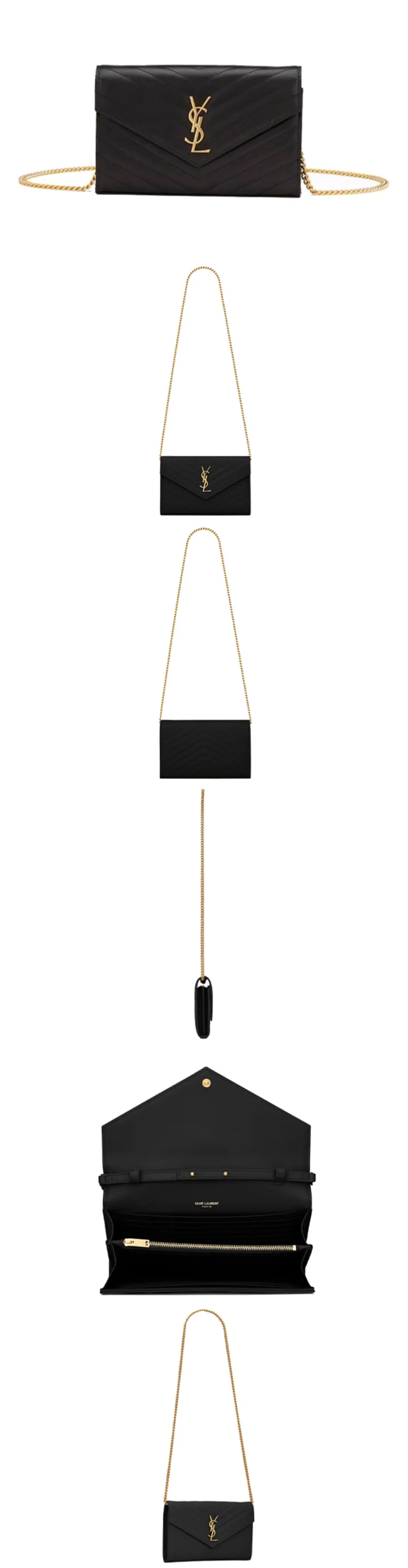 생로랑 그랑 드 뿌드르 엠보스드 레더 카산드라 마틀라세 체인 지갑 블랙 - POIZON