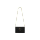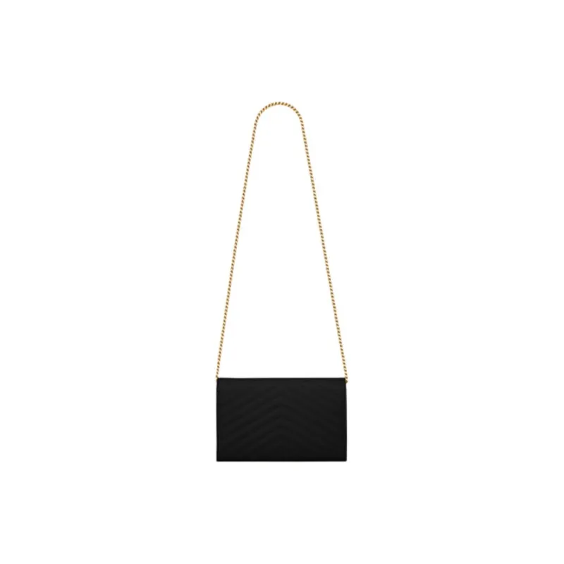 생로랑 그랑 드 뿌드르 엠보스드 레더 카산드라 마틀라세 체인 지갑 블랙