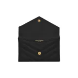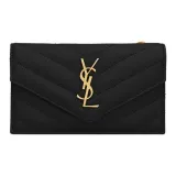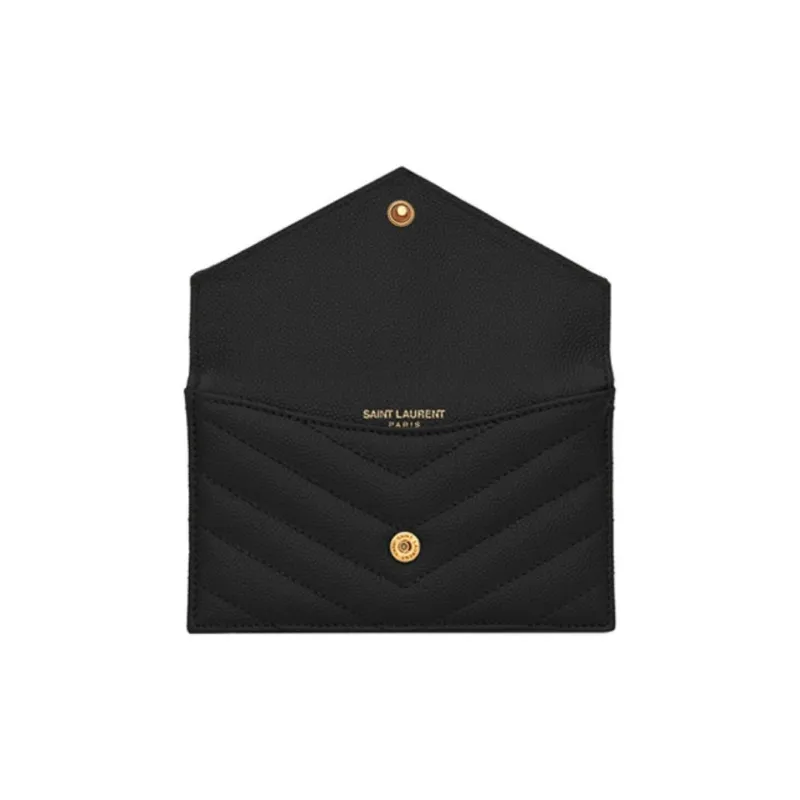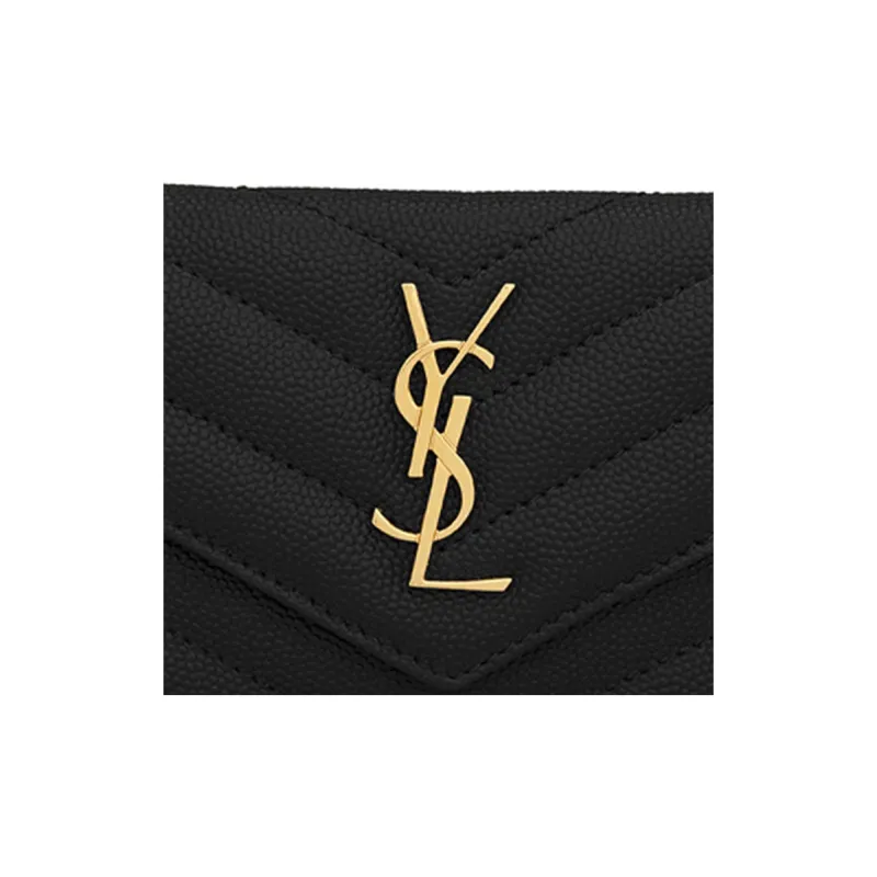 생로랑 그랑 드 뿌드르 엠보스드 레더 카산드라 마틀라세 프라그망 플랩 카드 케이스 블랙 - POIZON