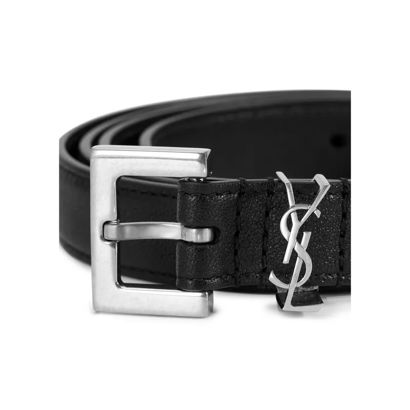생로랑 스무스 레더 카산드라 씬 벨트 블랙 - POIZON