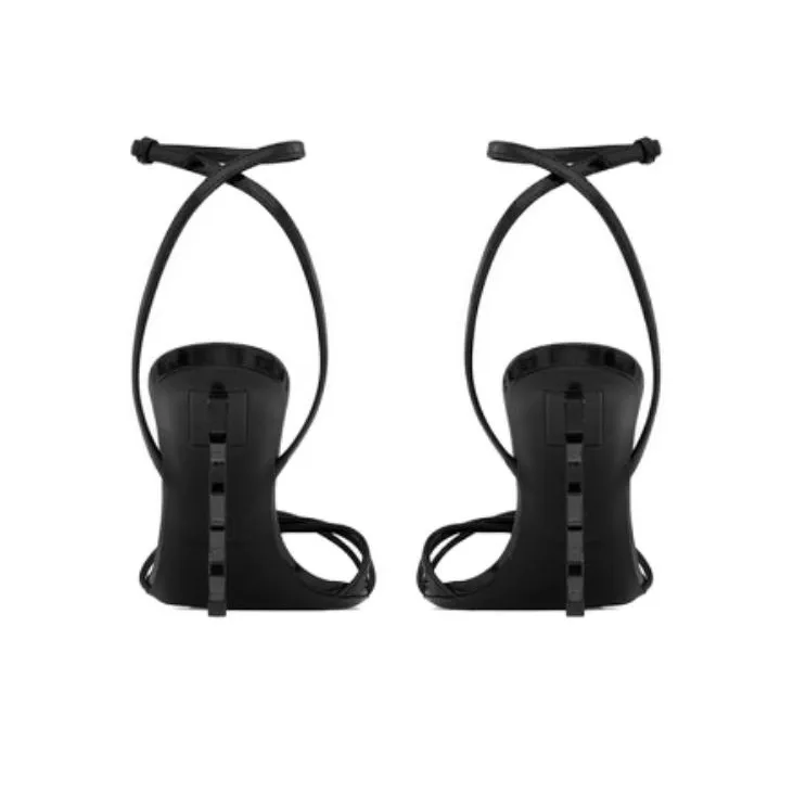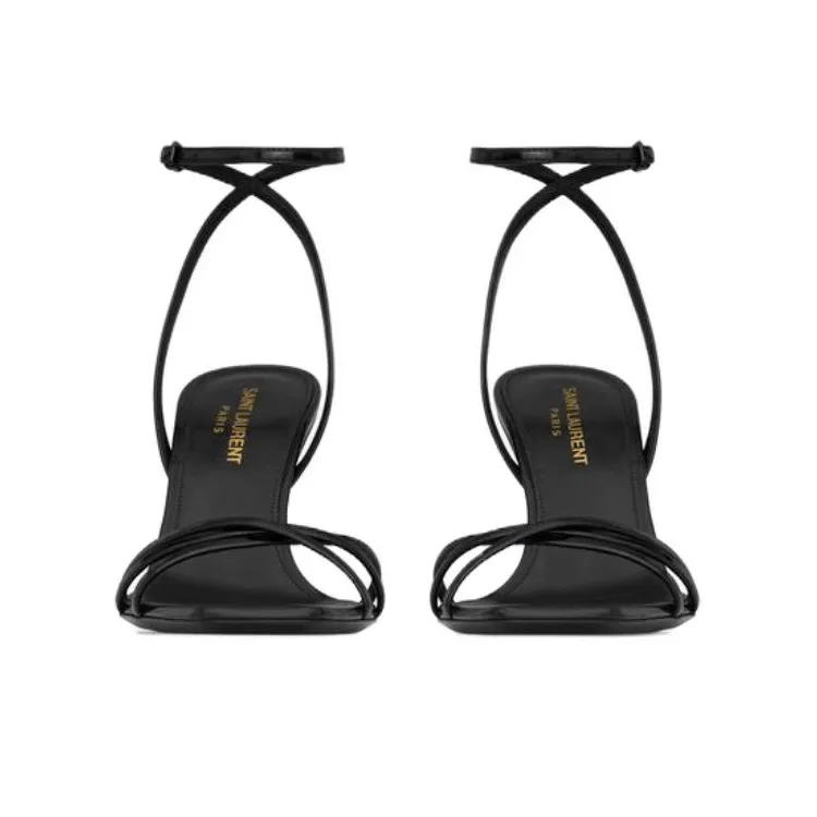 생로랑 카산드르 일자 스트랩 샌들 블랙 여성 - POIZON