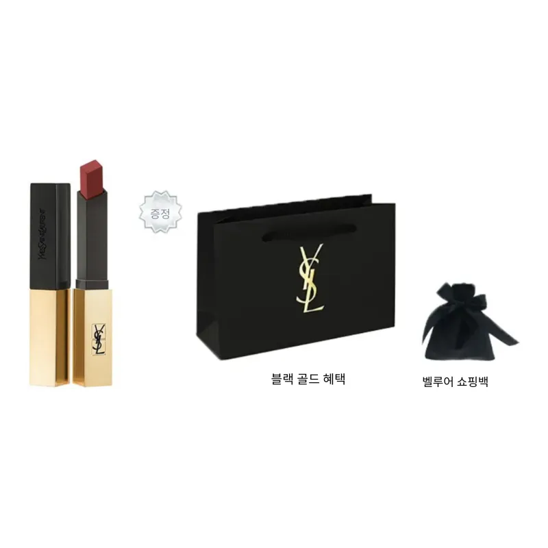 생로랑 스몰 블랙 줄무늬 스몰 골드 바 얇은 튜브 립스틱 쇼핑백 매칭 세트 벨루어 롱래스팅 무광