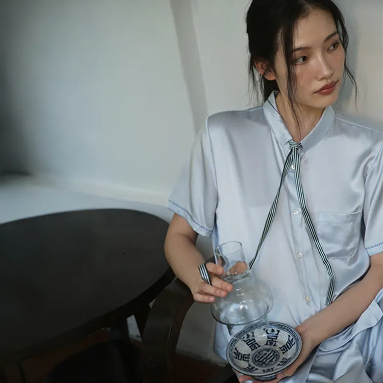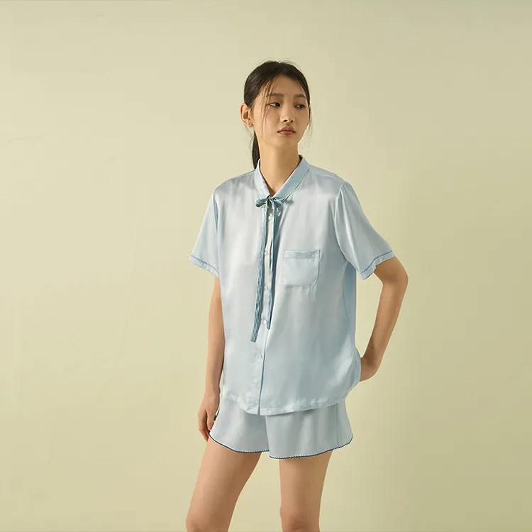 Sangluo 라이트 블루 여성 파자마 세트 - POIZON
