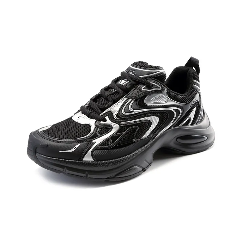 사치 쿠셔닝, 내마모성, 통기성이 좋은 로우탑 청키 스니커즈 4cm 남성 블랙