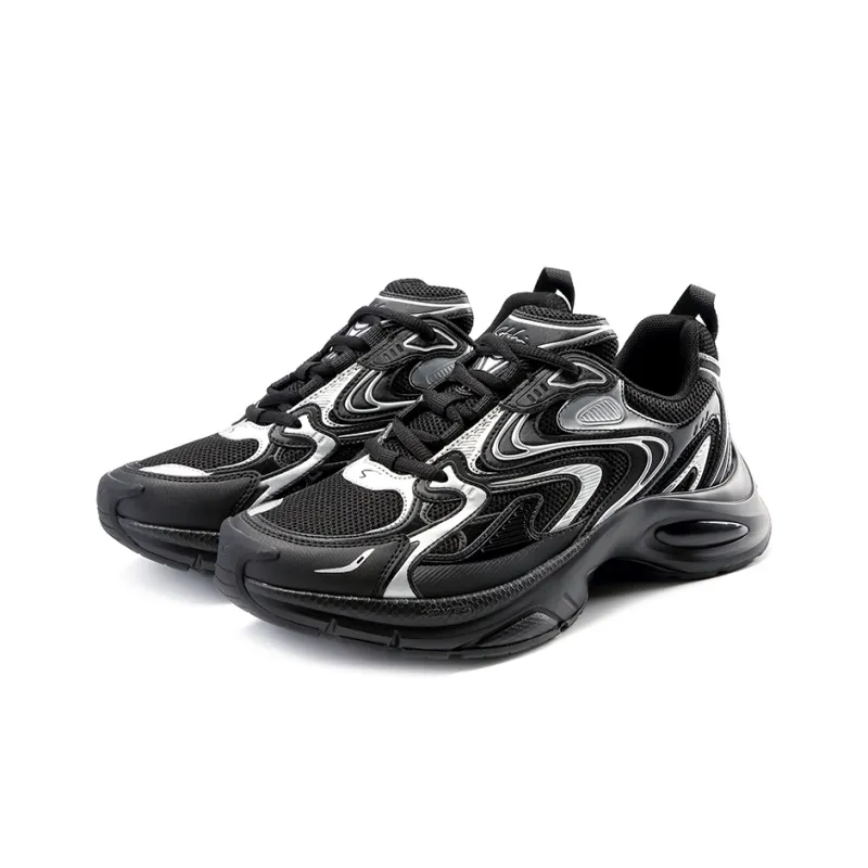 사치 쿠셔닝, 내마모성, 통기성이 좋은 로우탑 청키 스니커즈 4cm 남성 블랙 - POIZON