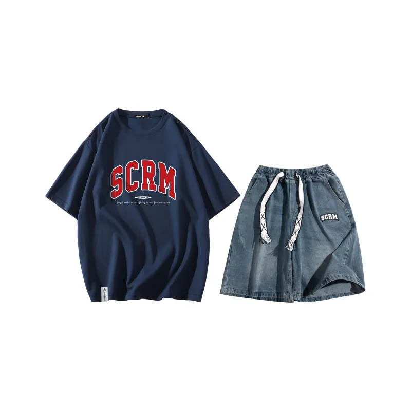 의류 세트 (다크 블루 반팔 + 블루 반바지)
