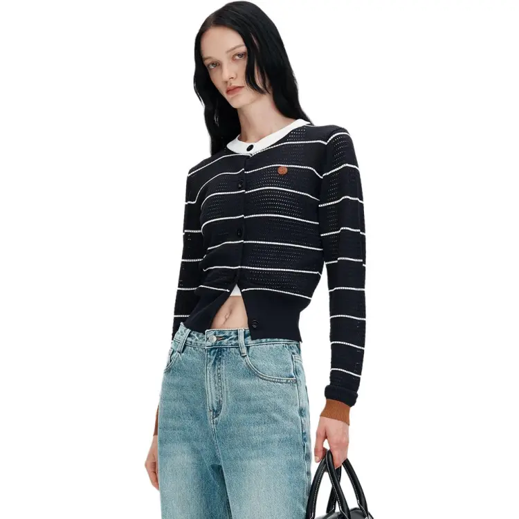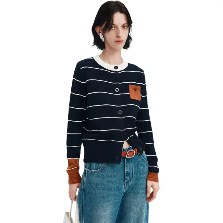 Self Who 니트웨어 여성 네이비 블루 스트라이프 패턴