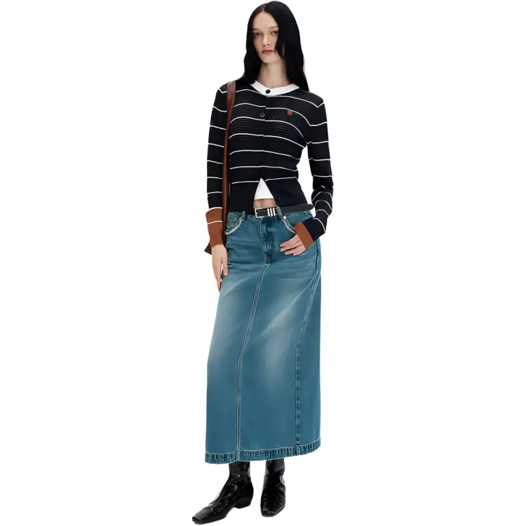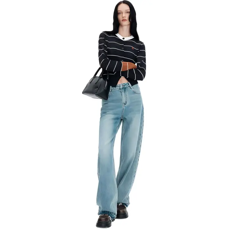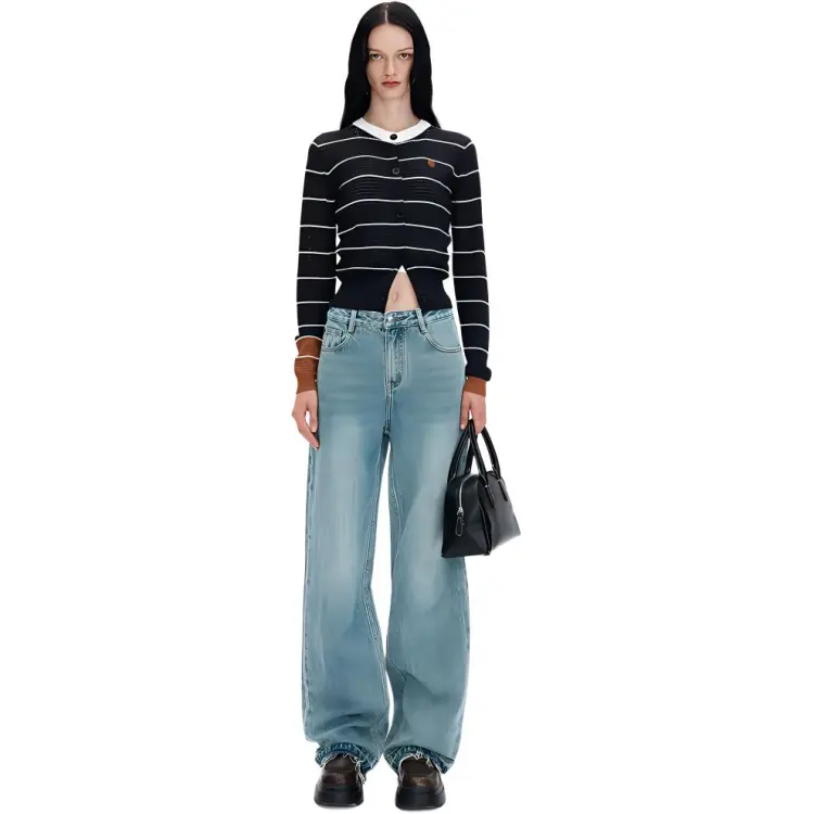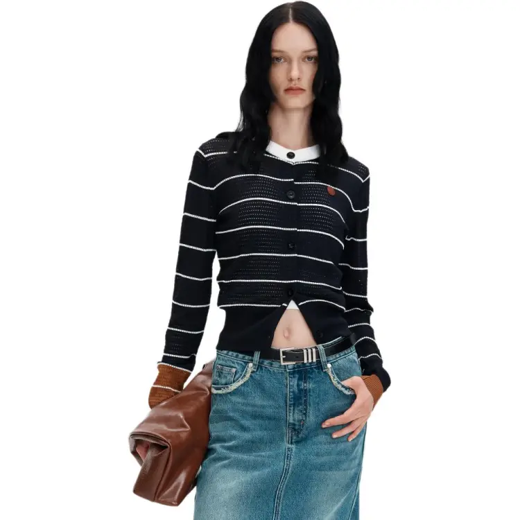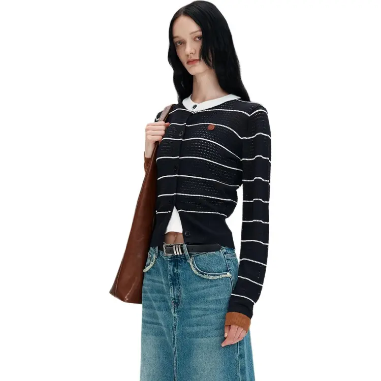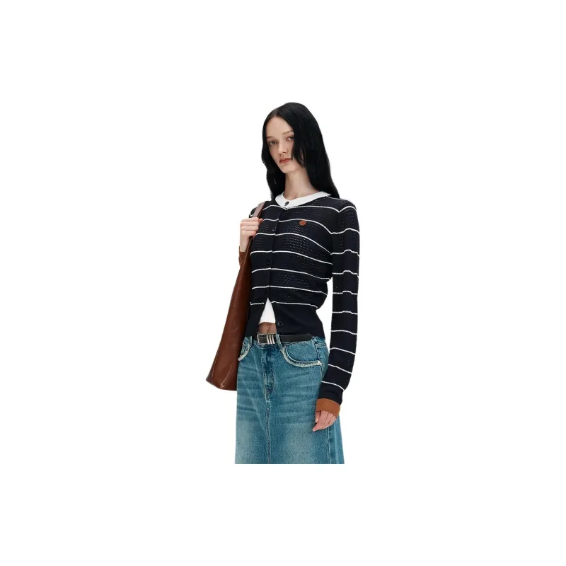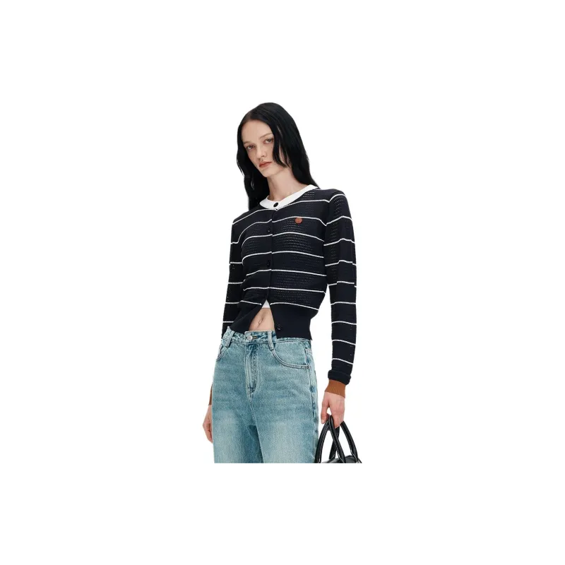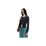 Self Who 니트웨어 여성 네이비 블루 스트라이프 패턴 - POIZON
