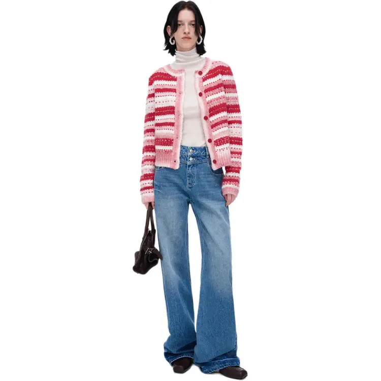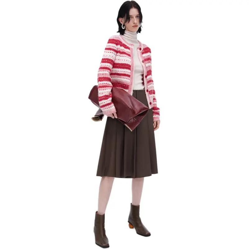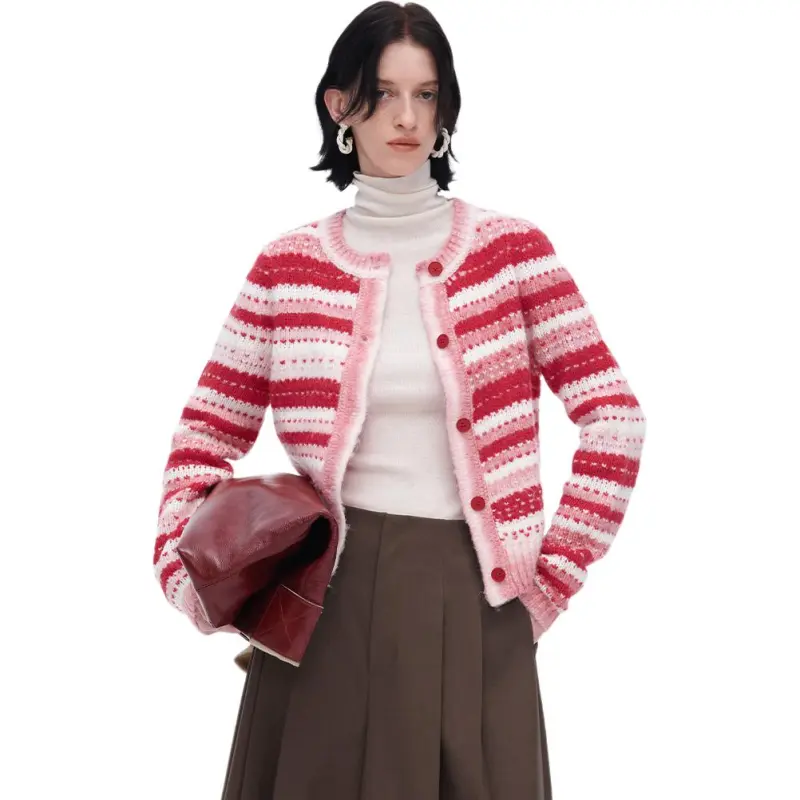 Self Who 화이트와 살짝 레드 여성 니트웨어