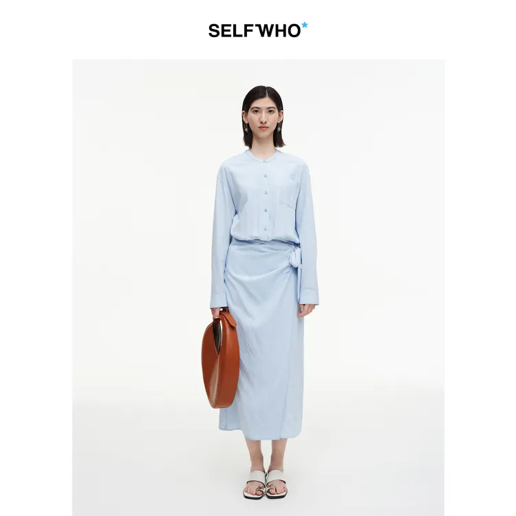 Self Who 스카이 블루 여성 긴팔 원피스 - POIZON