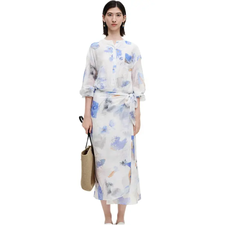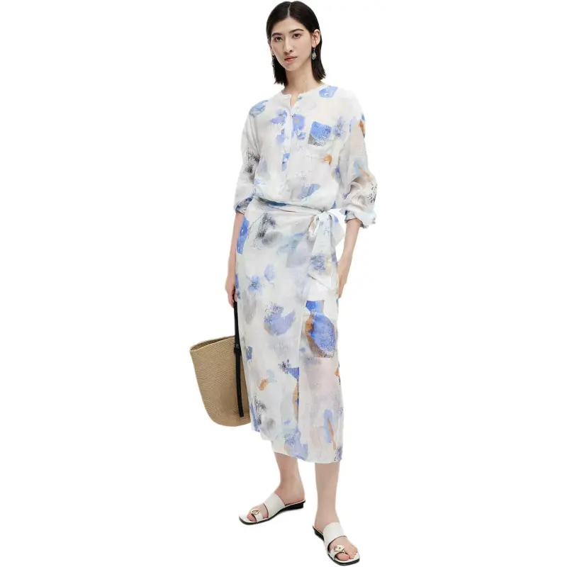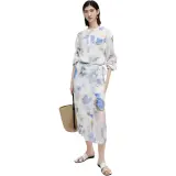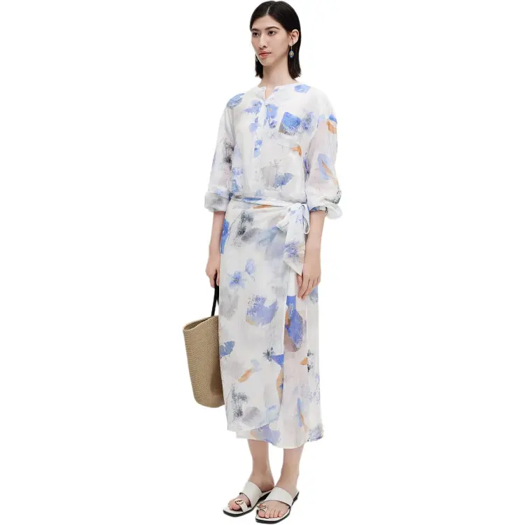 Self Who 그린 플로크드 세이지 블루 여성 긴팔 원피스 - POIZON
