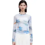 Self Who 그린 플로크드 세이지 블루 여성 티셔츠