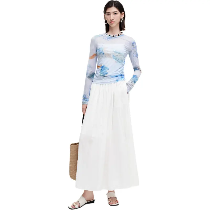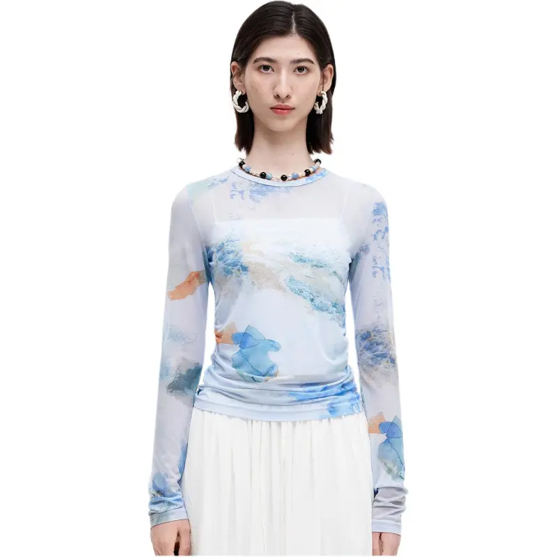 Self Who 그린 플로크드 세이지 블루 여성 티셔츠 - POIZON