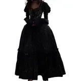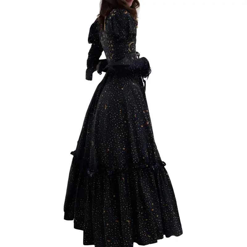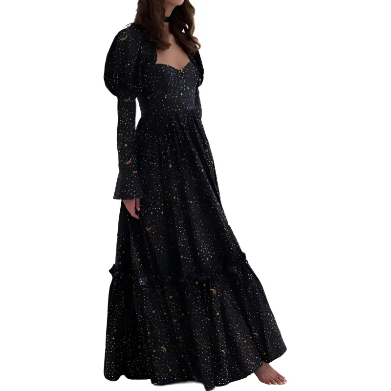Selkie FW24 이브닝 드레스 여성 블랙 밑창, 배스트 스타리 스카이 프린팅
