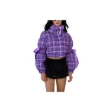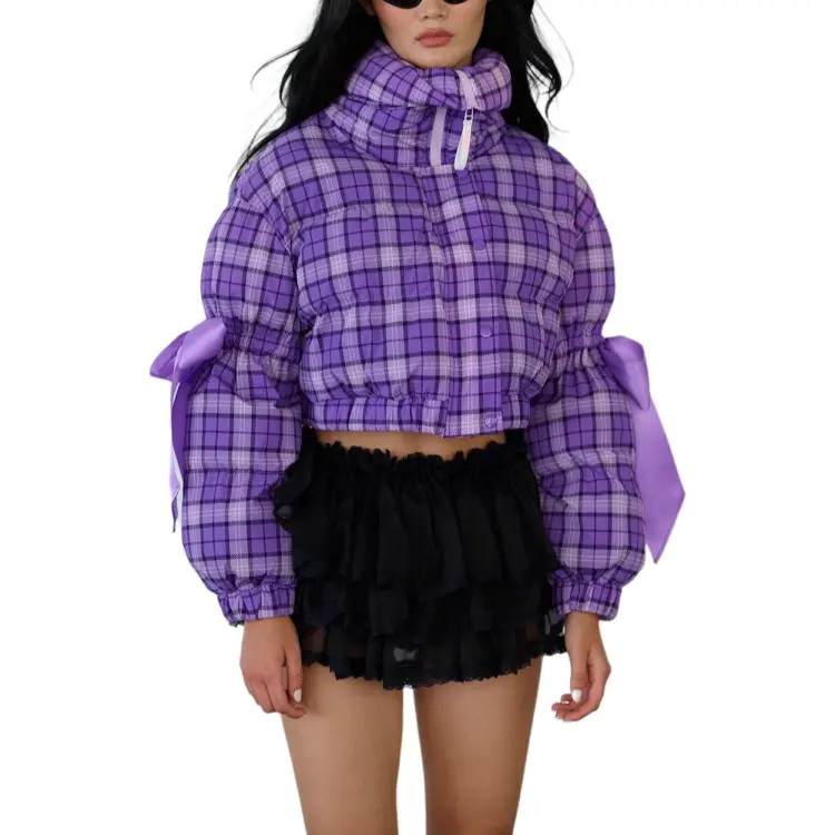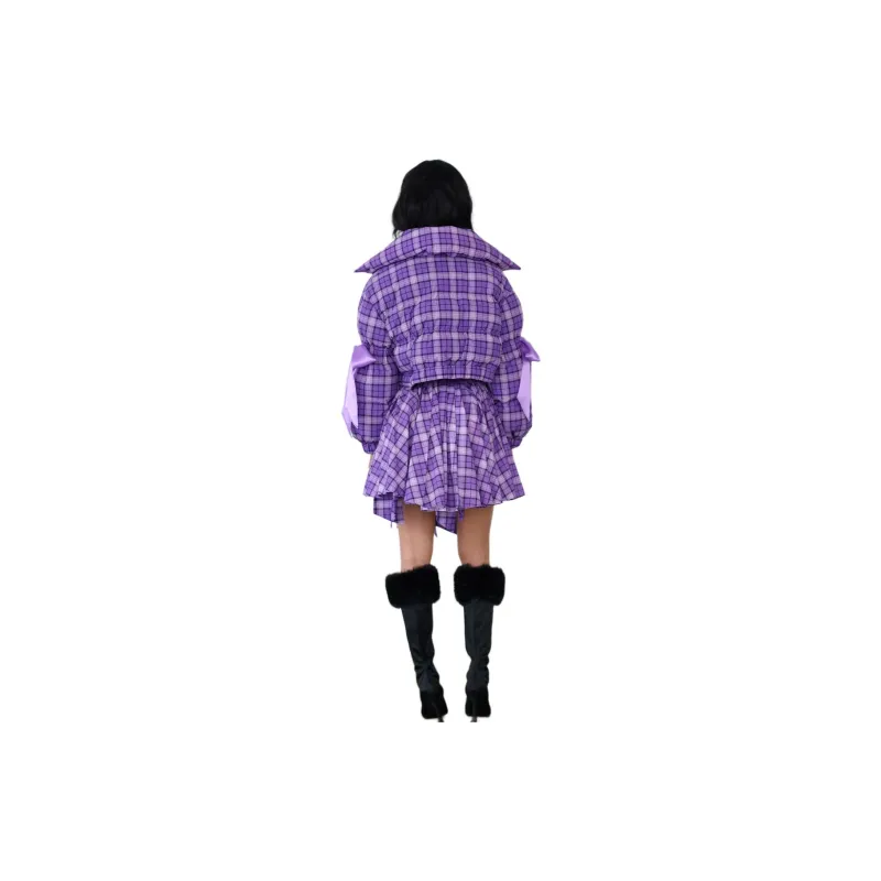 Selkie FW24 푸퍼 재킷 여성 퍼플 프레피 스타일 체크무늬 프린팅 - POIZON