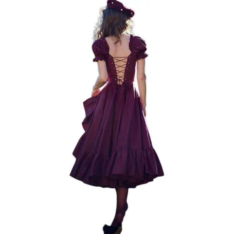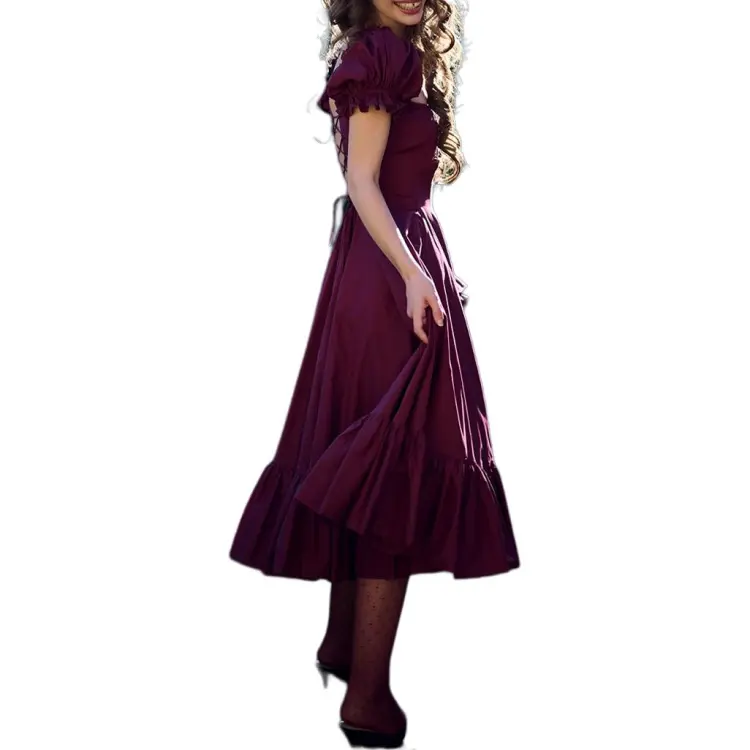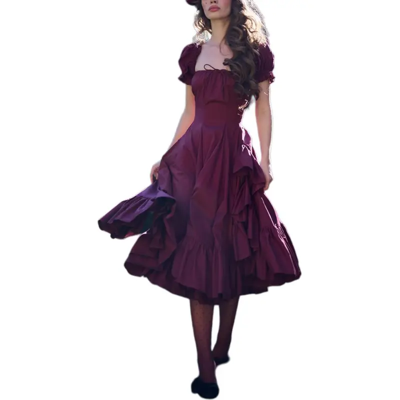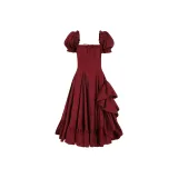 Selkie 버건디 여성 반팔 원피스 - POIZON