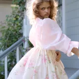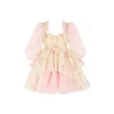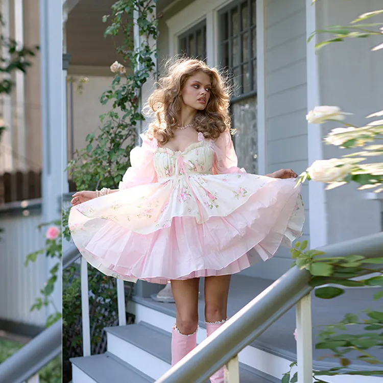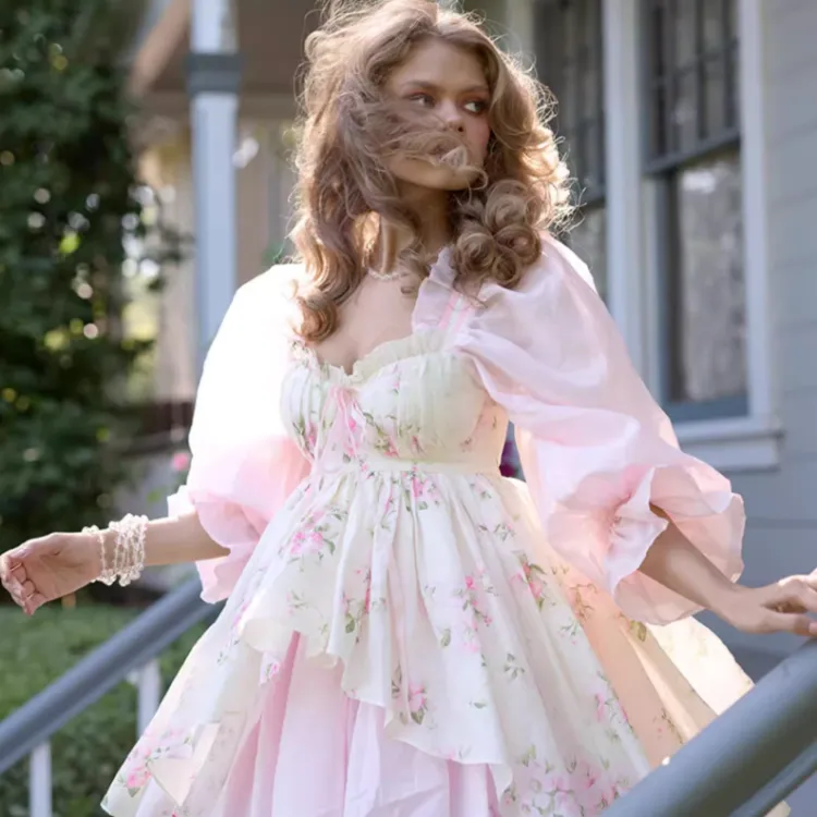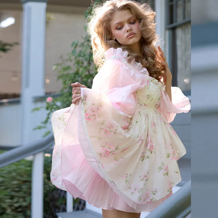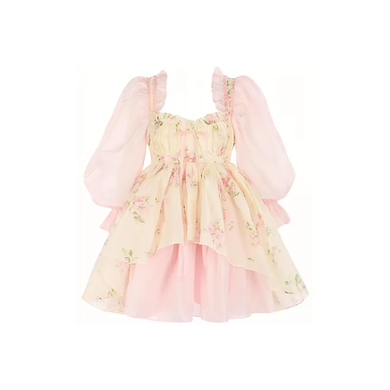 Selkie 밀크 화이트와 여름 꽃잎 프린팅 여성 긴팔 원피스 - POIZON