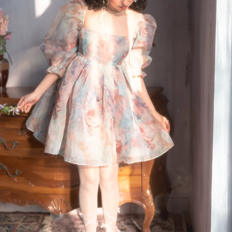 Selkie 반팔 원피스 여름 여성 Musa 뷰티 패턴 프린팅 - POIZON