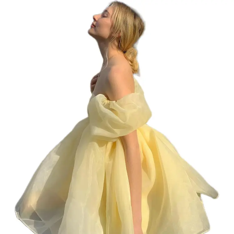 Selkie 옐로우 여성 반팔 원피스 - POIZON