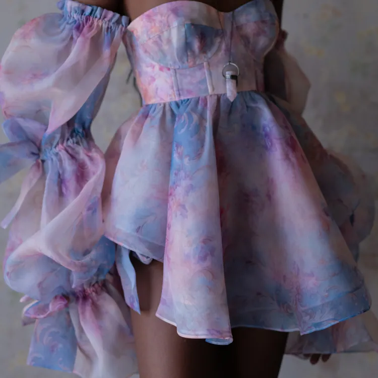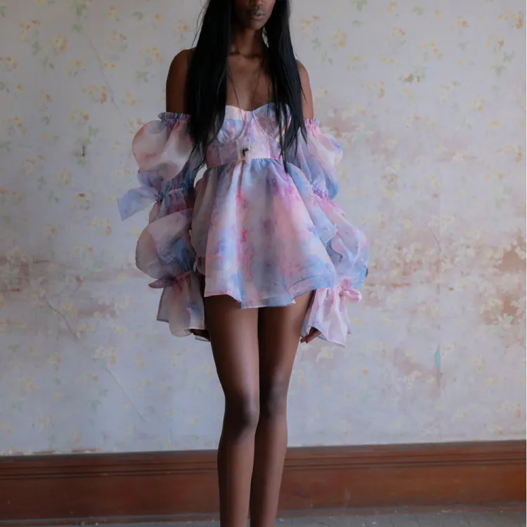 Selkie 로즈 프린팅 여성 긴팔 원피스 - POIZON
