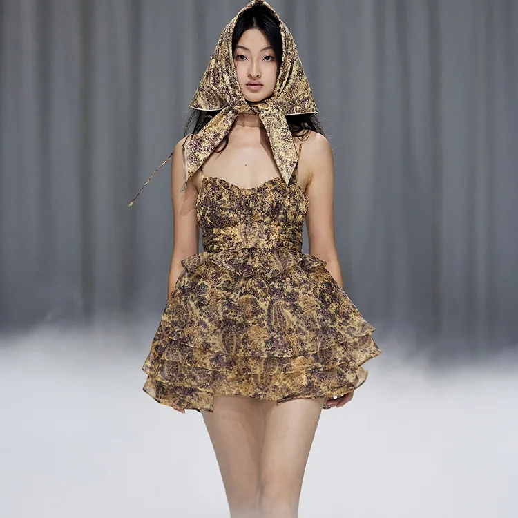 Selkie SS24 슬립 드레스 여성 옐로우 바닥층 및 플로럴 프린트 - POIZON