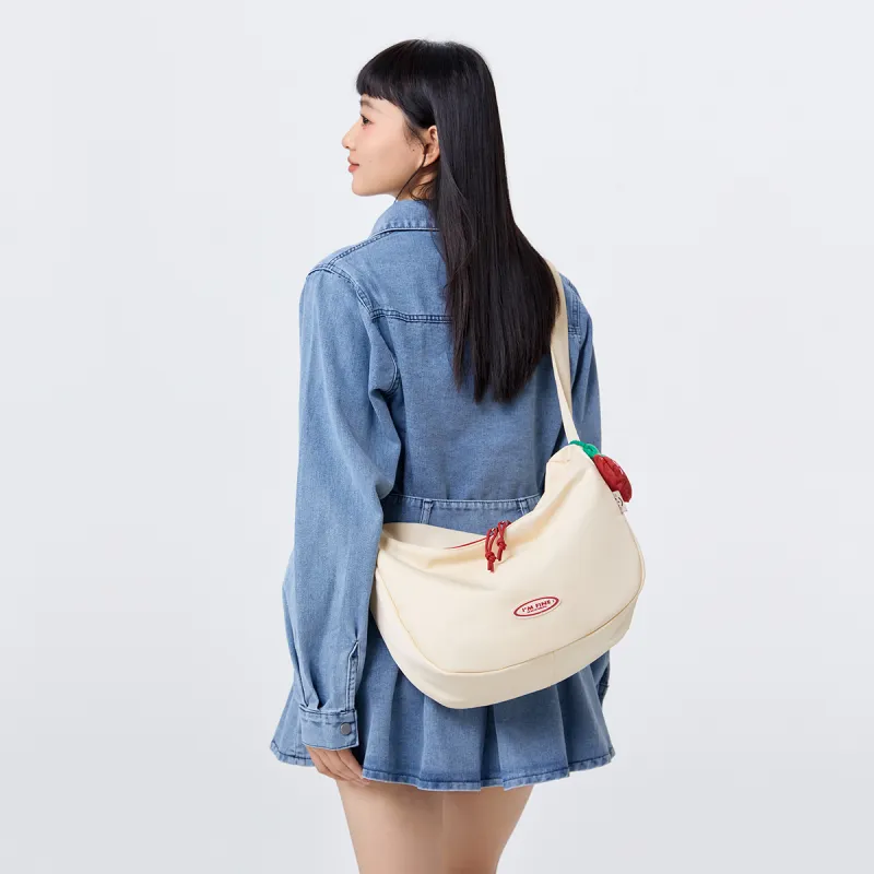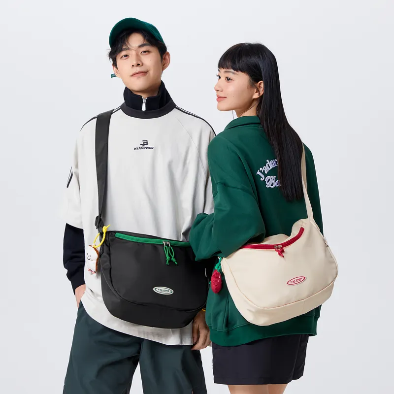 SEM/R 나일론 숄더 백, 크로스 백 M 남녀공용 레드 톤/에크루/블랙 - POIZON