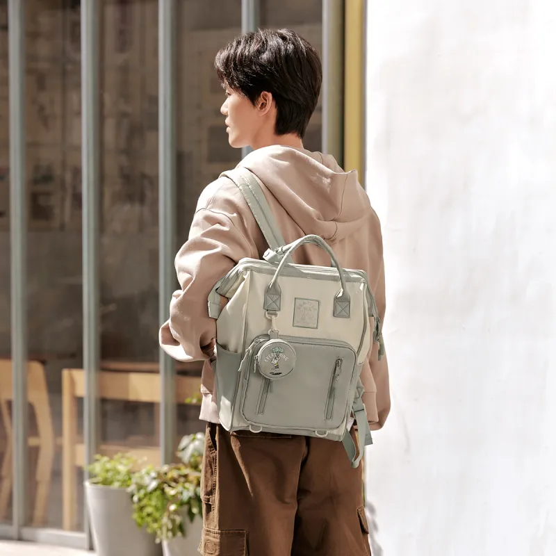 SEM/R X 스누피 스누피 콜라보레이션 나일론 원단 백팩 L 남녀공용 에크루/블랙 - POIZON