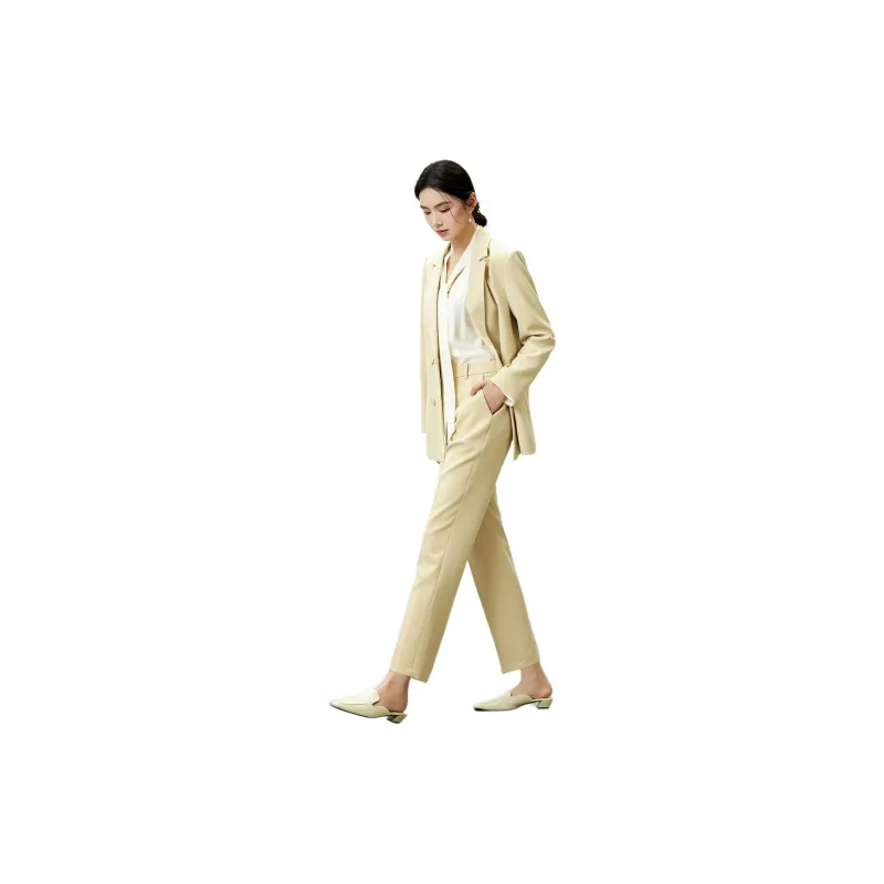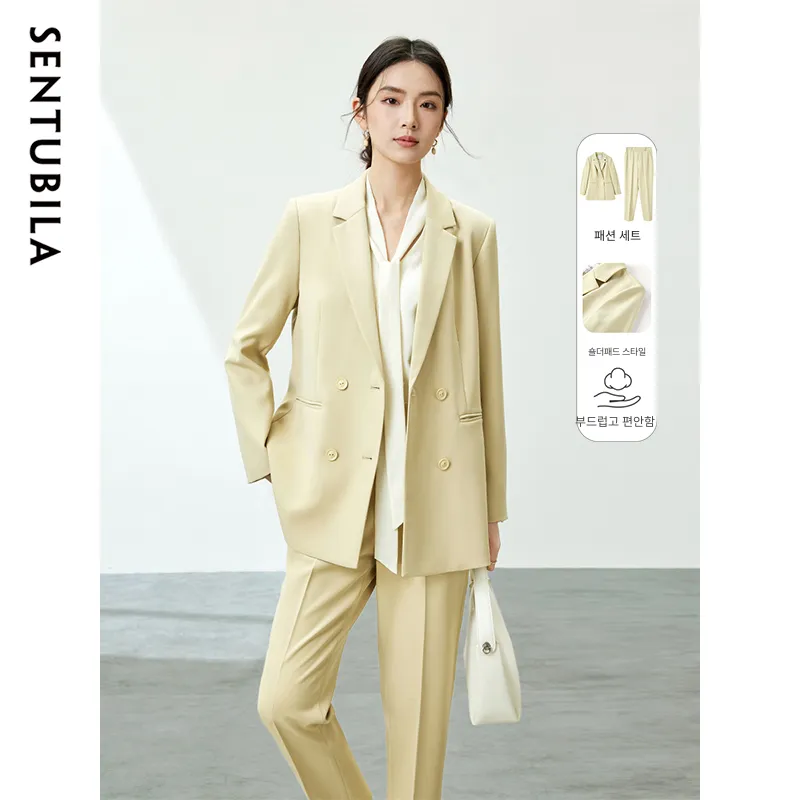배치 1 원단: 코트: 96.4% 폴리에스터, 3.6% 스판덱스; 바지: 96.4% 폴리에스터, 3.6% 스판덱스; 안감: 코트: 95.0% 폴리에스터, 5.0% 스판덱스;