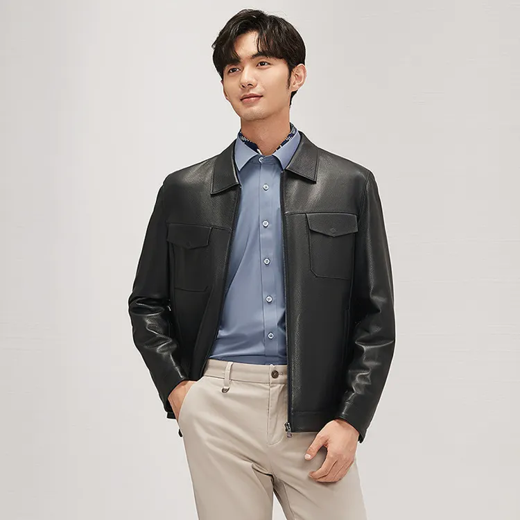 SEVEN 블랙 남성 가죽 자켓 - POIZON
