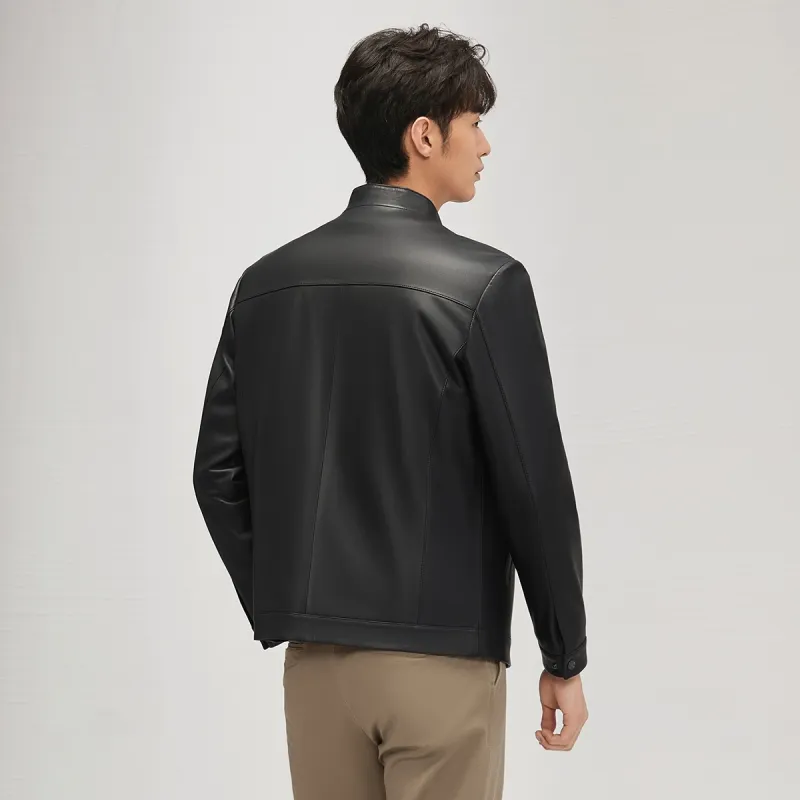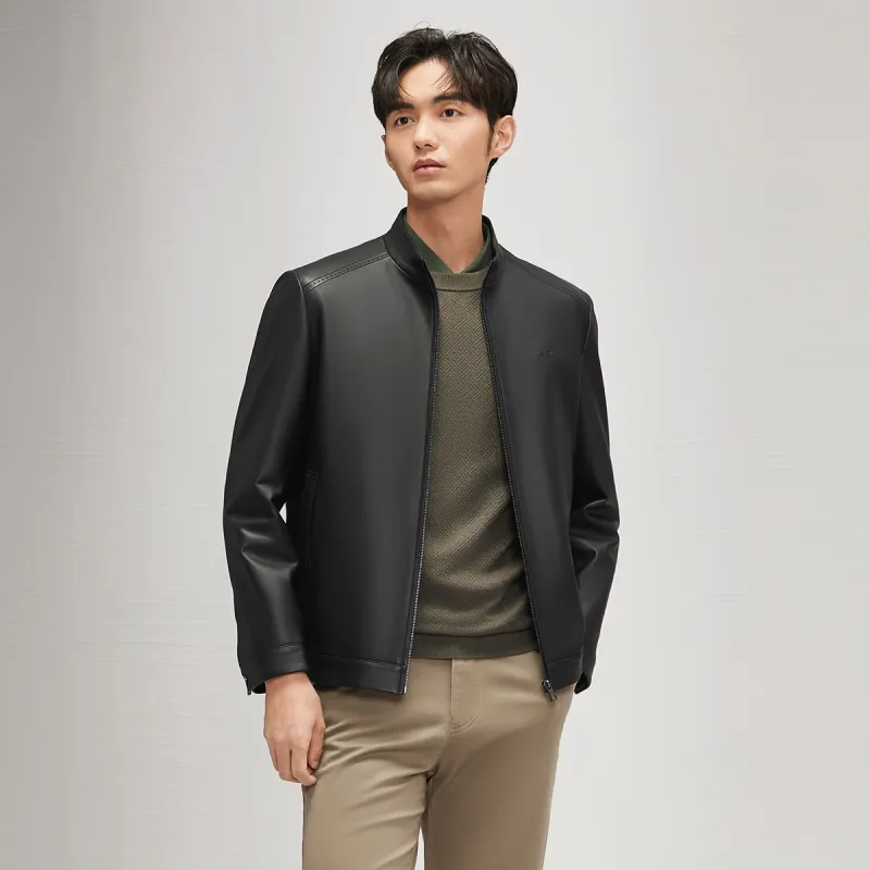 SEVEN 도톰한 보온 가죽 재킷 가을 및 겨울용 남성 블랙 - POIZON