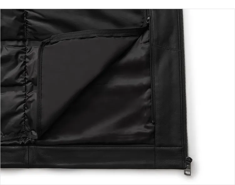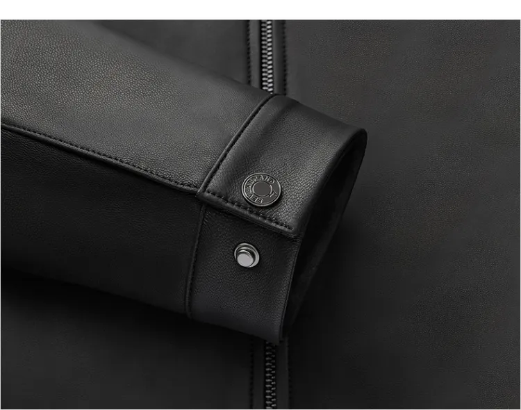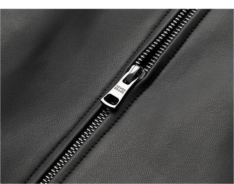 SEVEN 도톰한 보온 가죽 재킷 가을 및 겨울용 남성 블랙