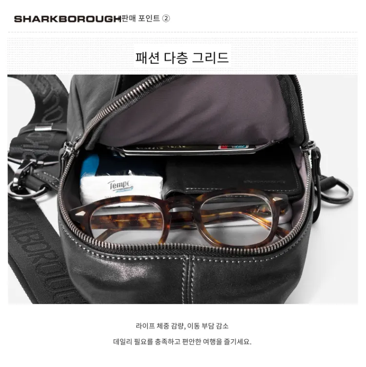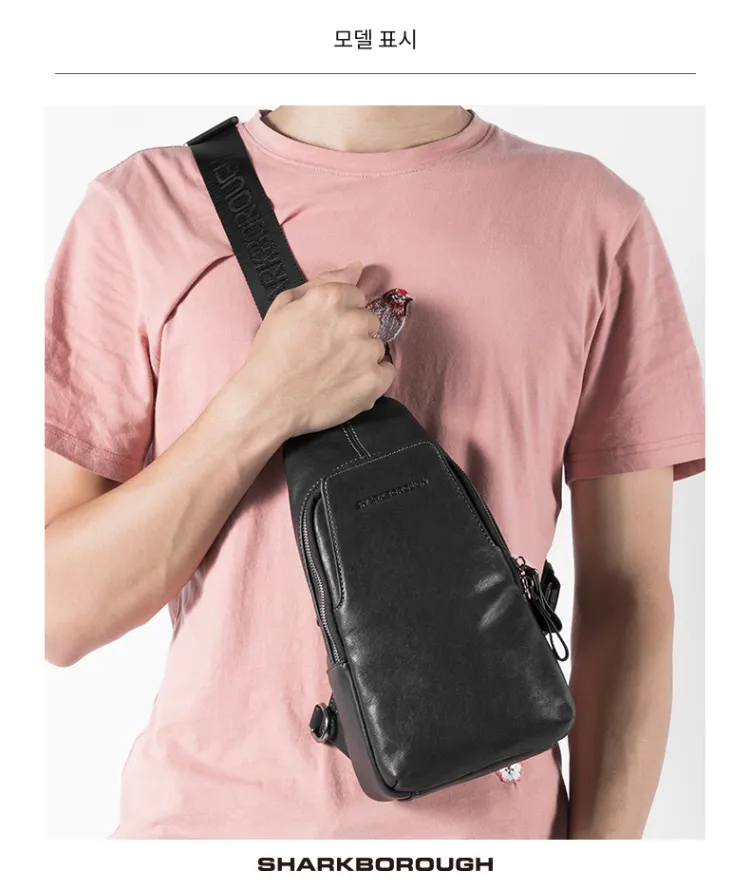 Sharkborough 소가죽 슬링 가방, <브랜드_1>e 어깨 크로스백 레귤러 남성 블랙