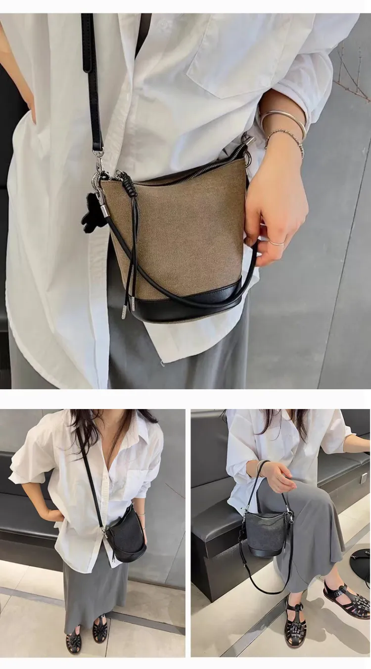 Sharkborough 린넨 및 소가죽 크로스백, 숄더 백 레귤러 여성 샤차/블랙 그레이 - POIZON
