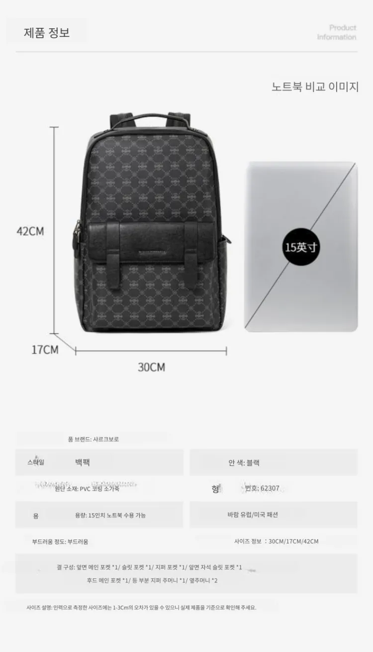 Sharkborough PVC와 소가죽 노트북 백팩 L 남성 블랙 - POIZON