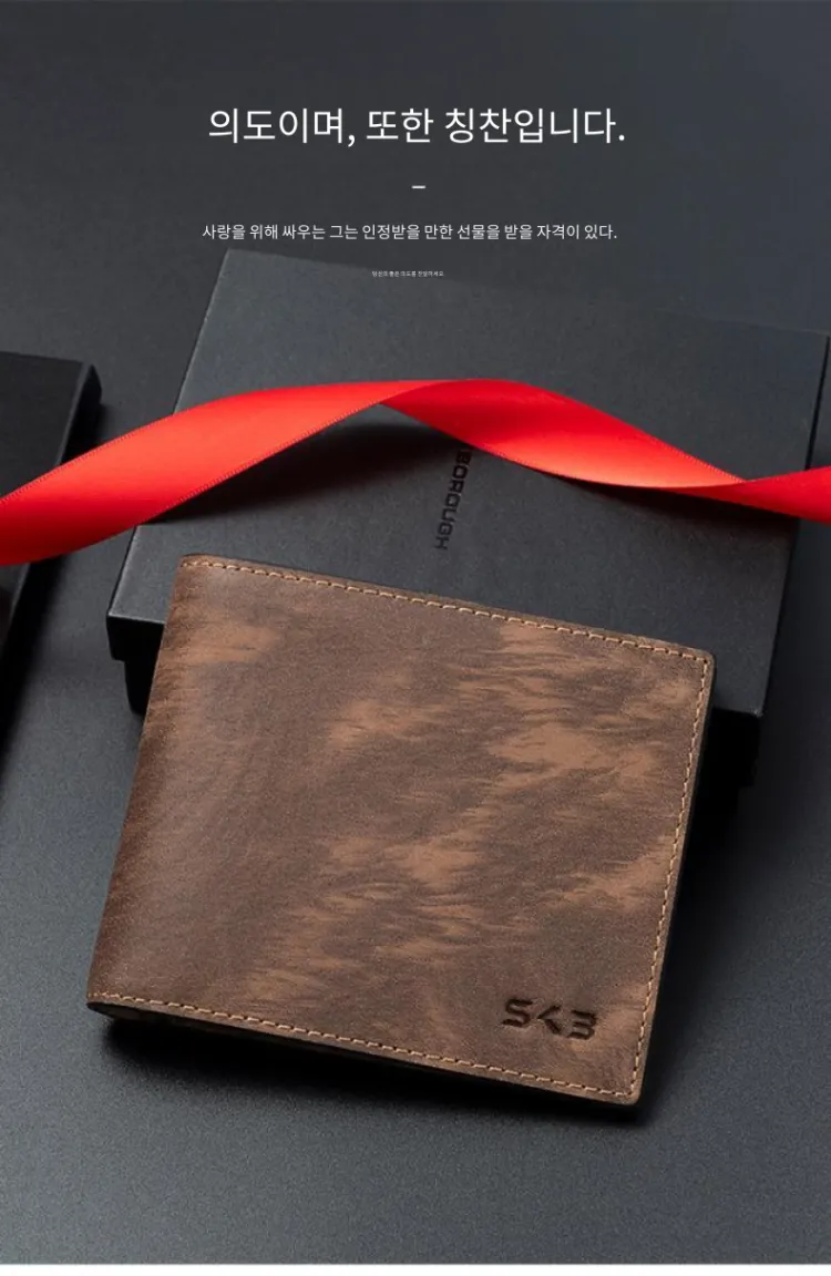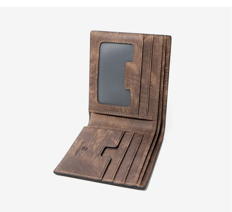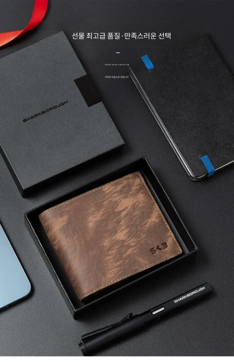Sharkborough 천연 가죽 빈티지 크롭 풀그레인 소가죽 멀티플 카드 슬롯 카드 홀더 지갑, 지갑 레귤러 남성 커피 - POIZON